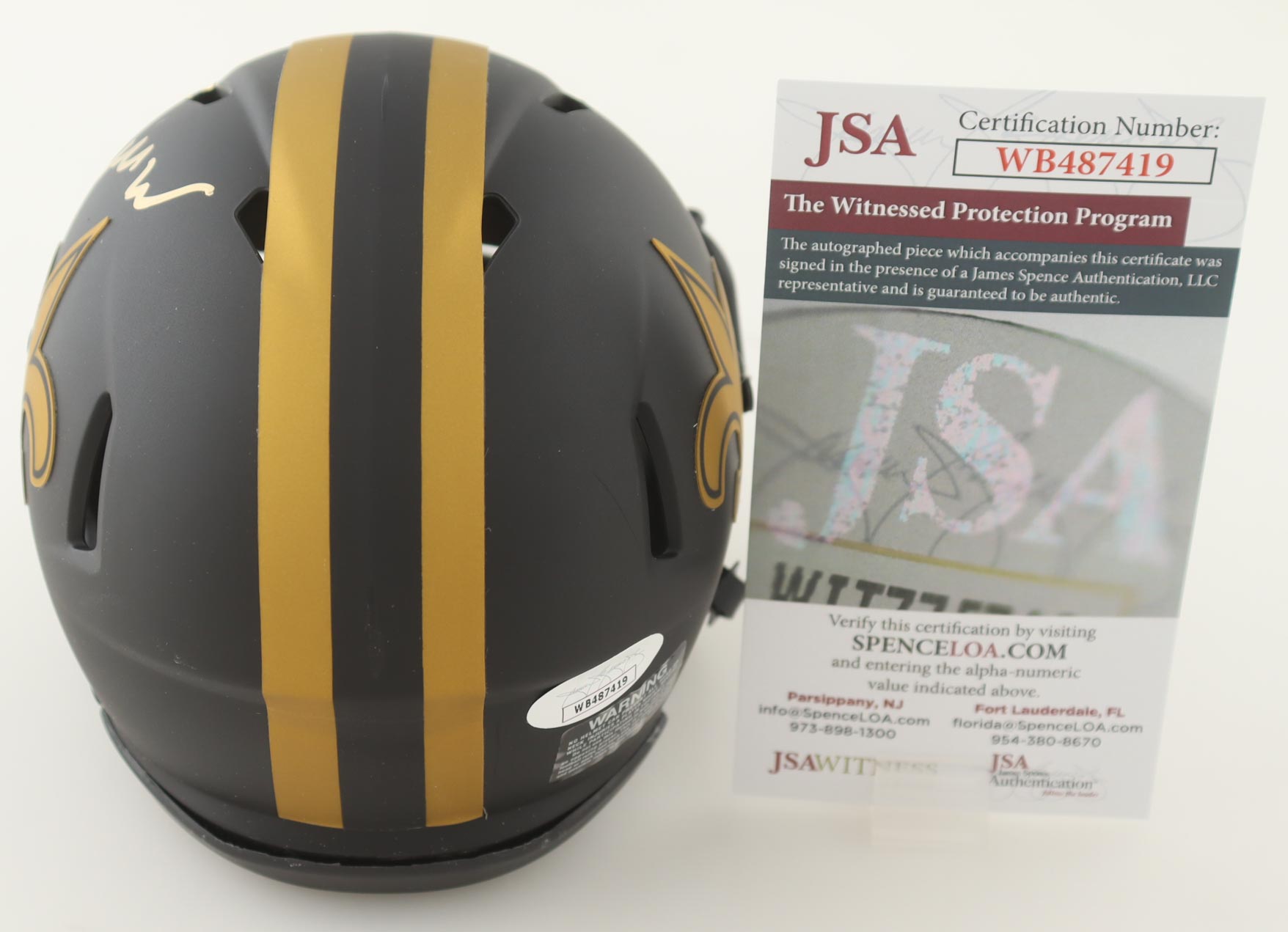 Riddell New Orleans Saints eclipse alternate speed mini helmet. Hand-signed by Willie Roaf (HOF).