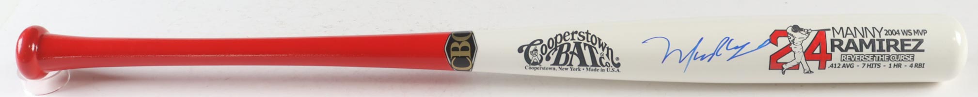 Cooperstown Bat Co. "Reverse The Curse" 2004 WS MVP baseball bat has been hand-signed by Manny Ramirez (Boston Red Sox).