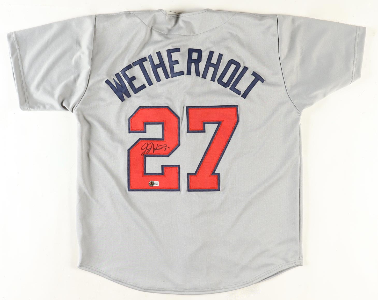 Custom jersey. Everything sewn on, size XL. Hand-signed by JJ Wetherholt (St. Louis Cardinals).