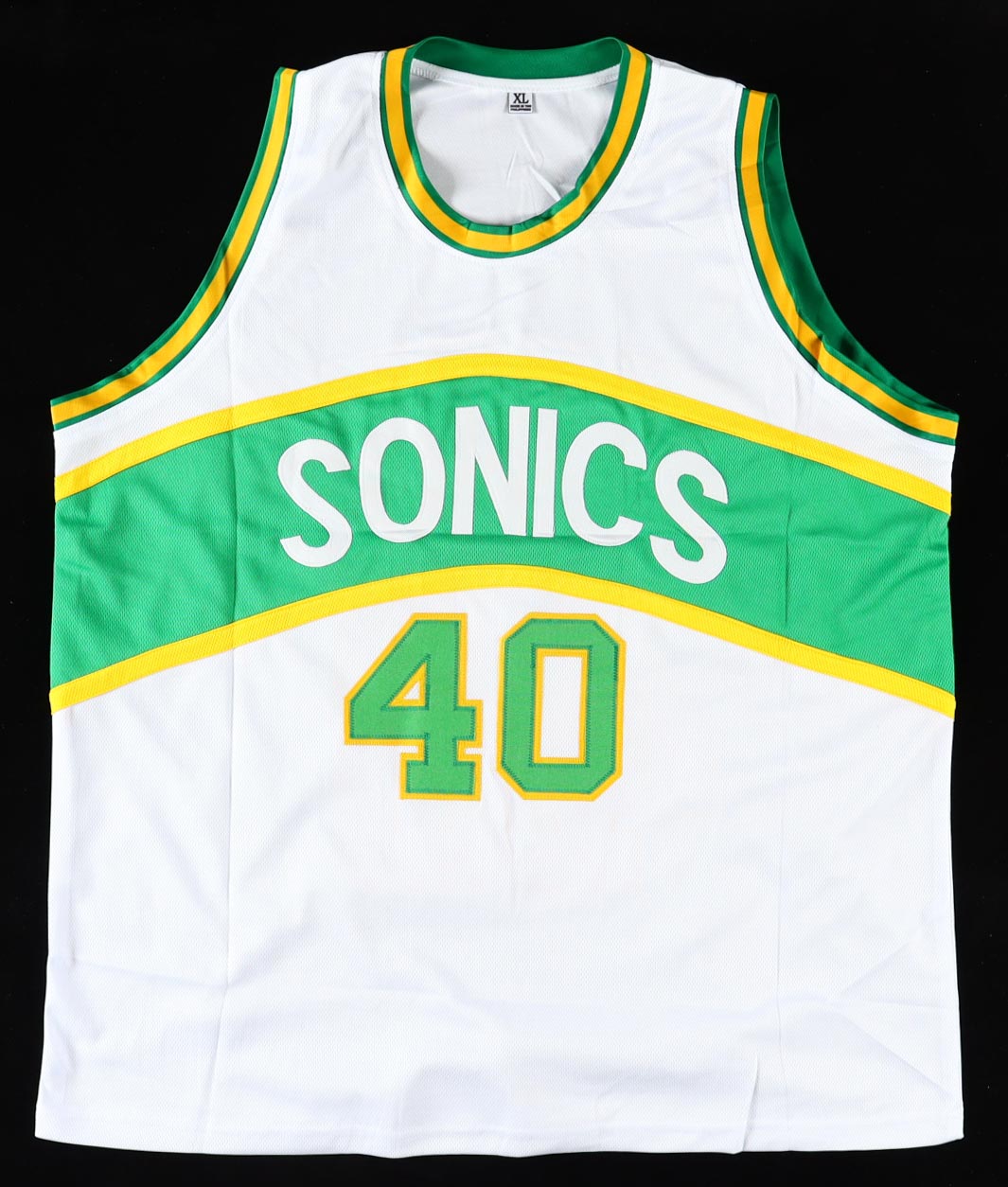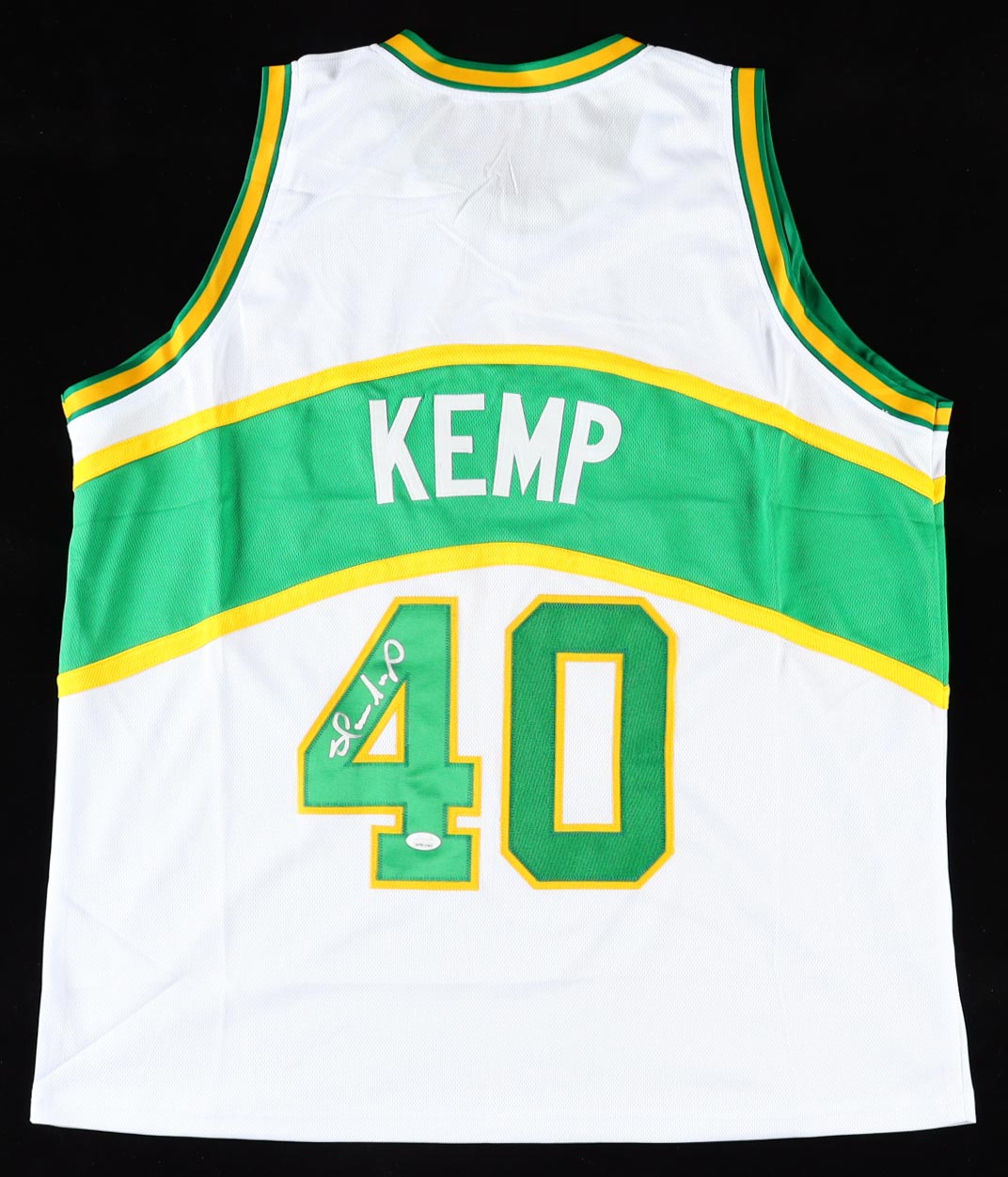 Custom jersey with everything sewn on, size XL. Hand-signed by Shawn Kemp.