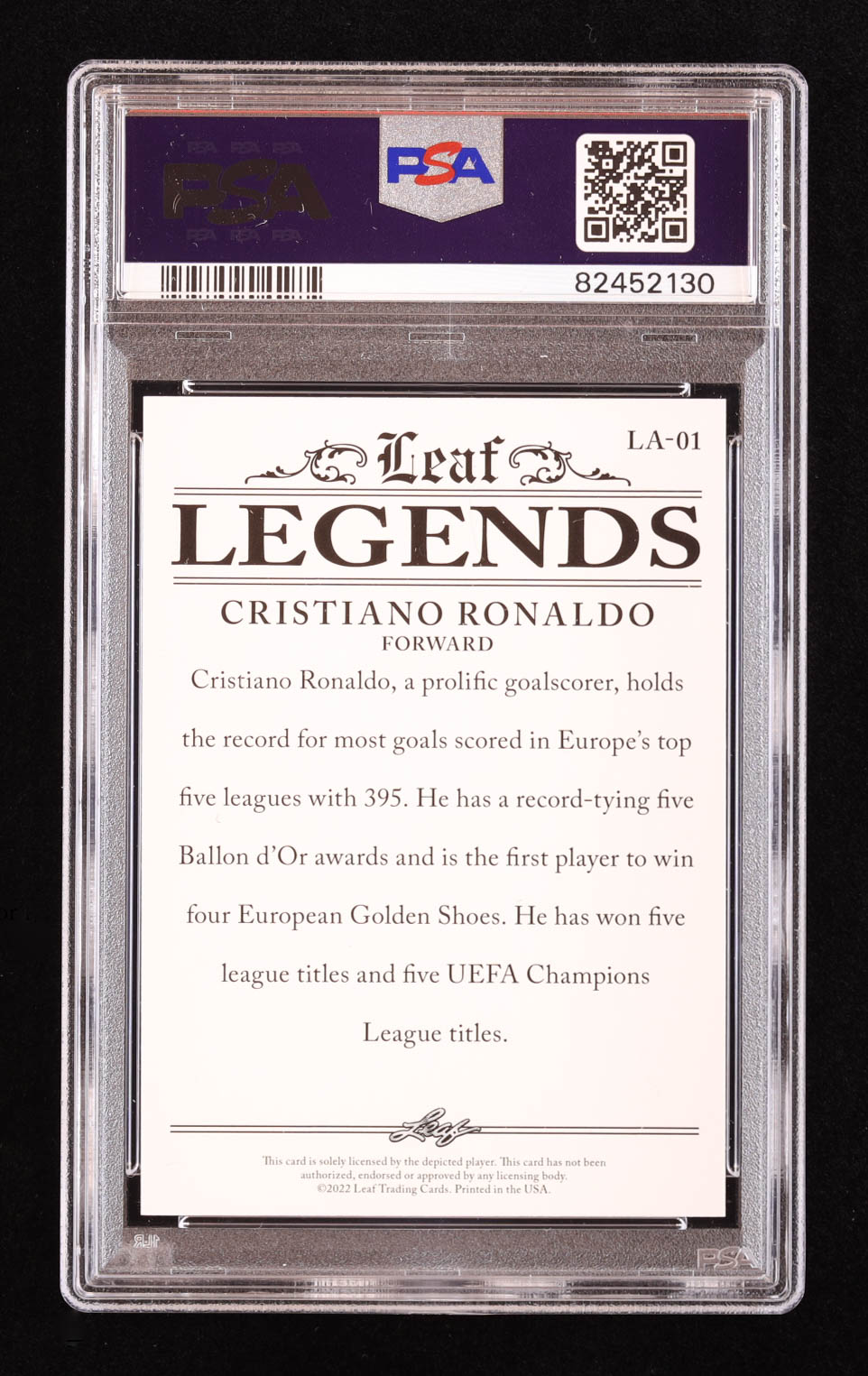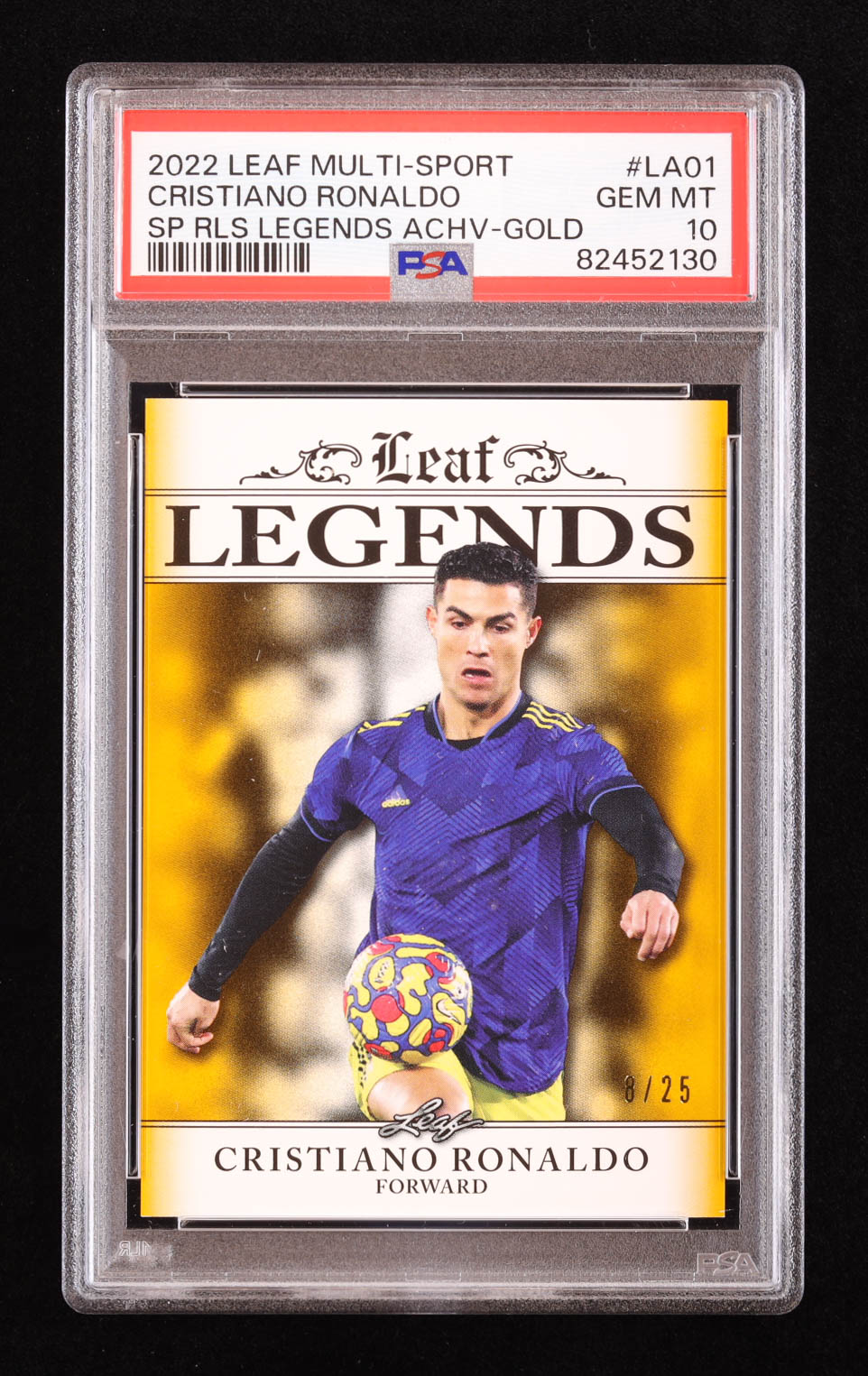 Cristiano Ronaldo 2022 Leaf Special Release Legends Achievement Gold #LA01 #8/25 (PSA 10)