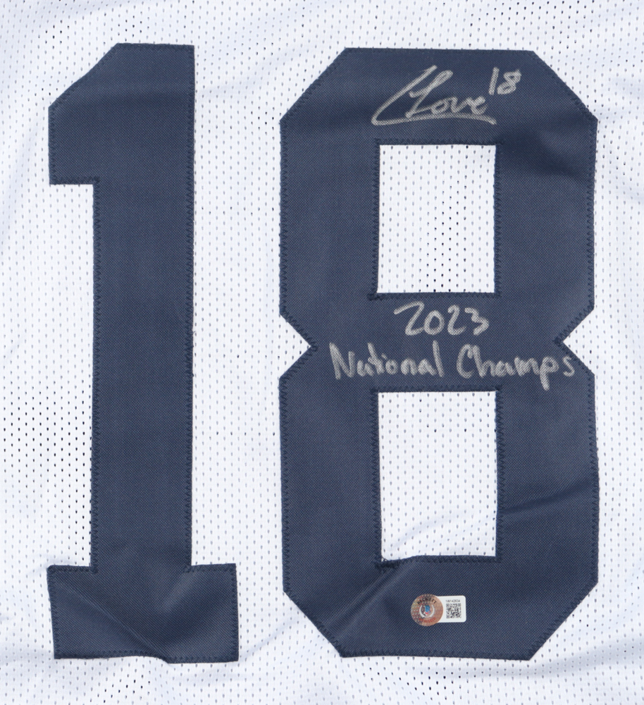 Colston Loveland Signed Jersey Inscribed "2023 National Champs" (Beckett)