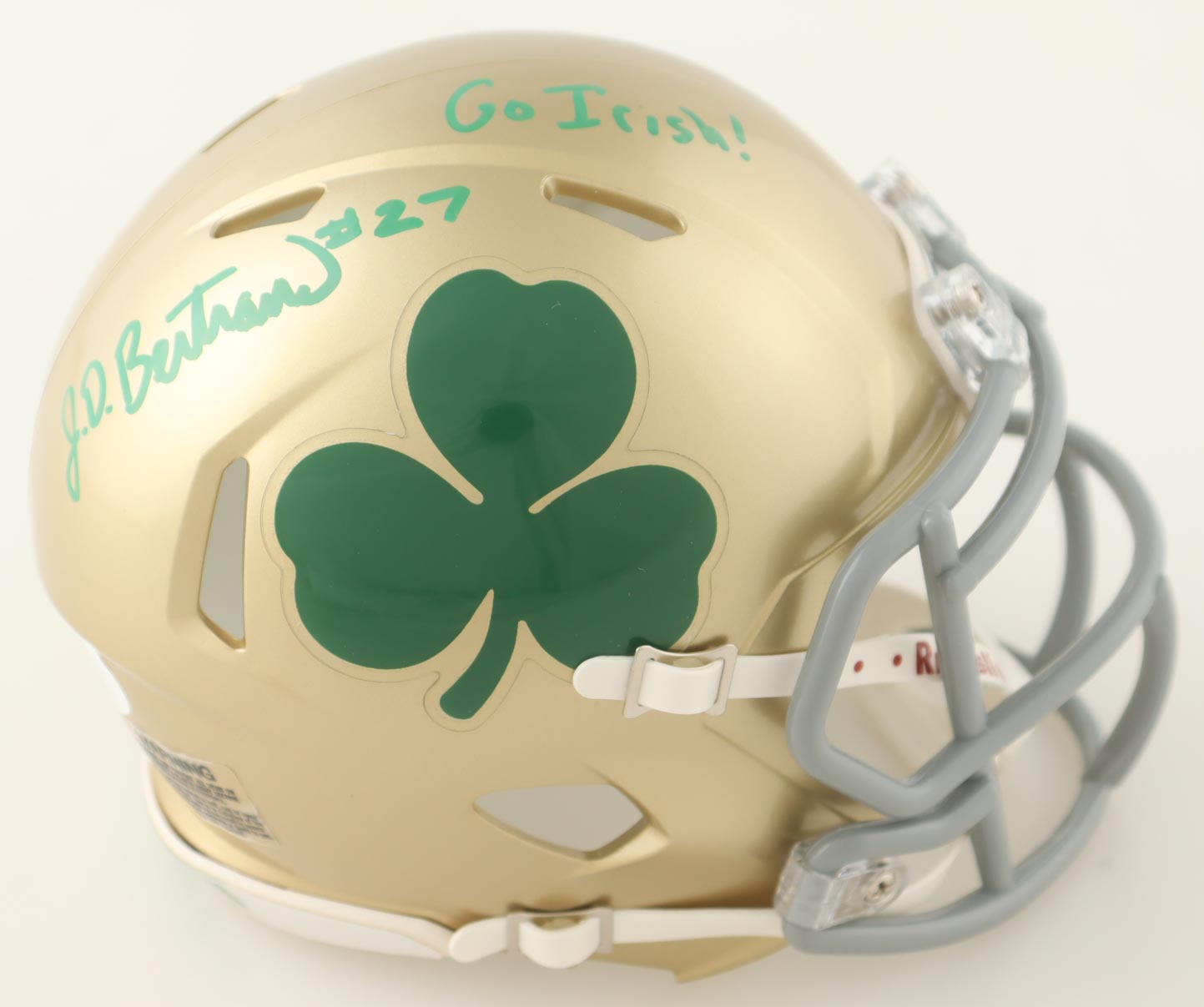 Riddell Notre Dame Fighting Irish Speed mini helmet. Hand-signed and inscribed by J.D. Bertrand.
