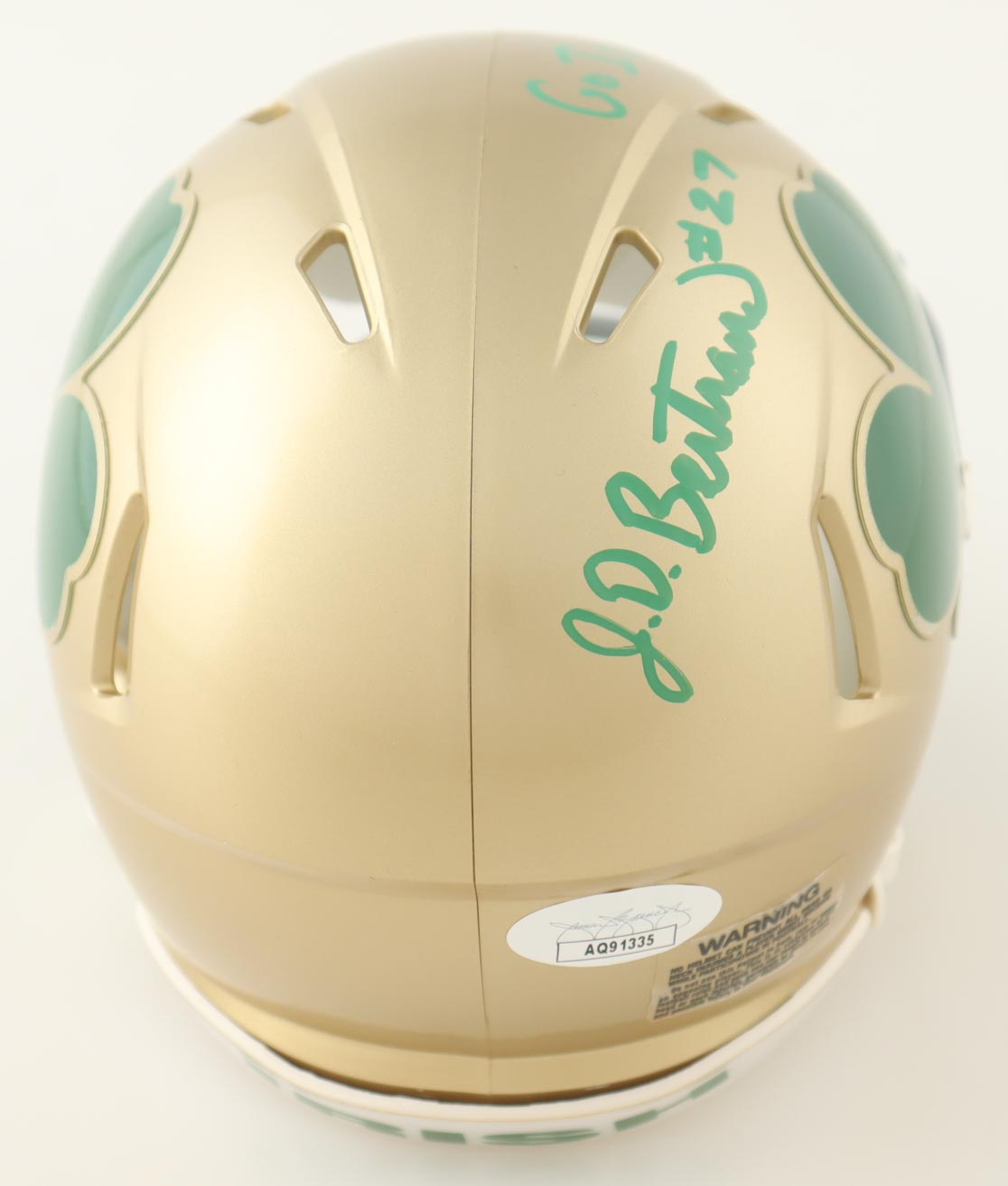 J.D. Bertrand Signed Notre Dame Fighting Irish Speed Mini Helmet Inscribed "Go Irish!" (JSA)