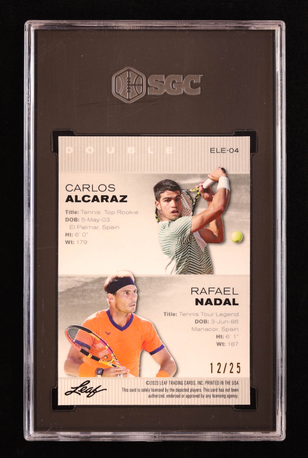 Carlos Alcaraz / Rafael Nadal 2023 Leaf Special Release Exclusive Legends Edition Double Mojo Silver #ELE4 #12/25 (SGC 10)