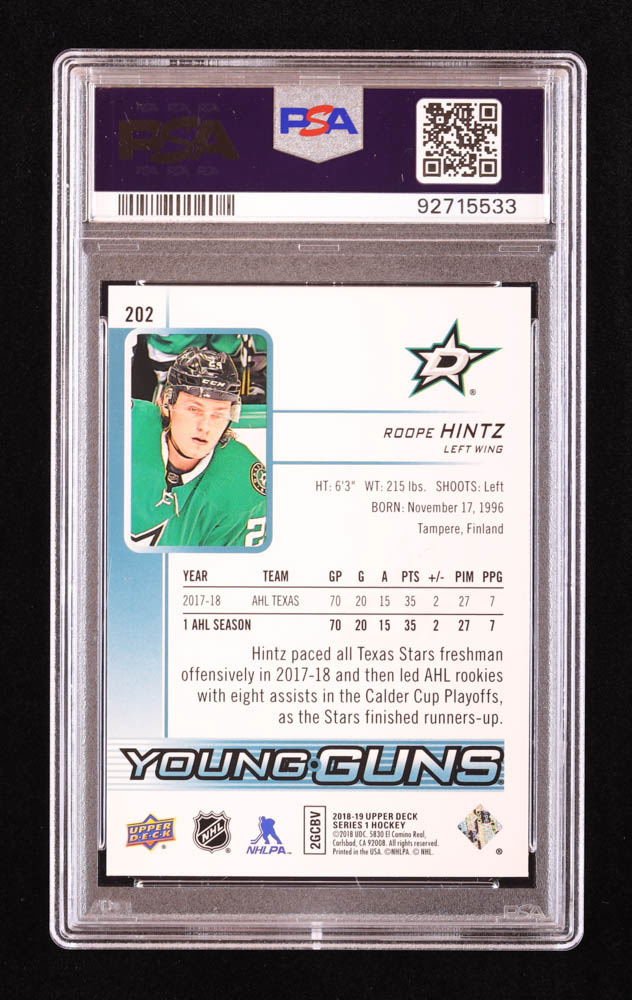 Roope Hintz Signed 2018-19 Upper Deck #202 YG RC (PSA)