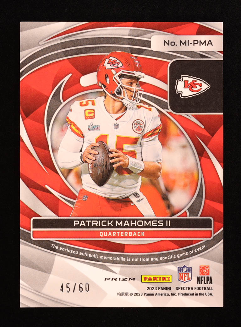 Patrick Mahomes II 2023 Panini Spectra Max Impact Materials Neon Blue #24 #45/60