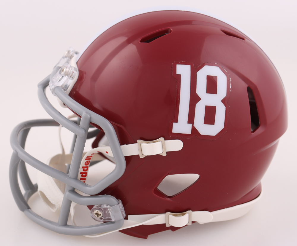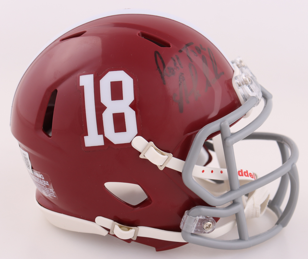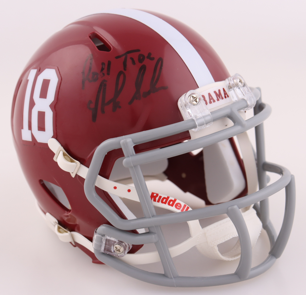 Riddell Alabama Crimson Tide speed mini hemet. Hand-signed and inscribed by Nick Saban.