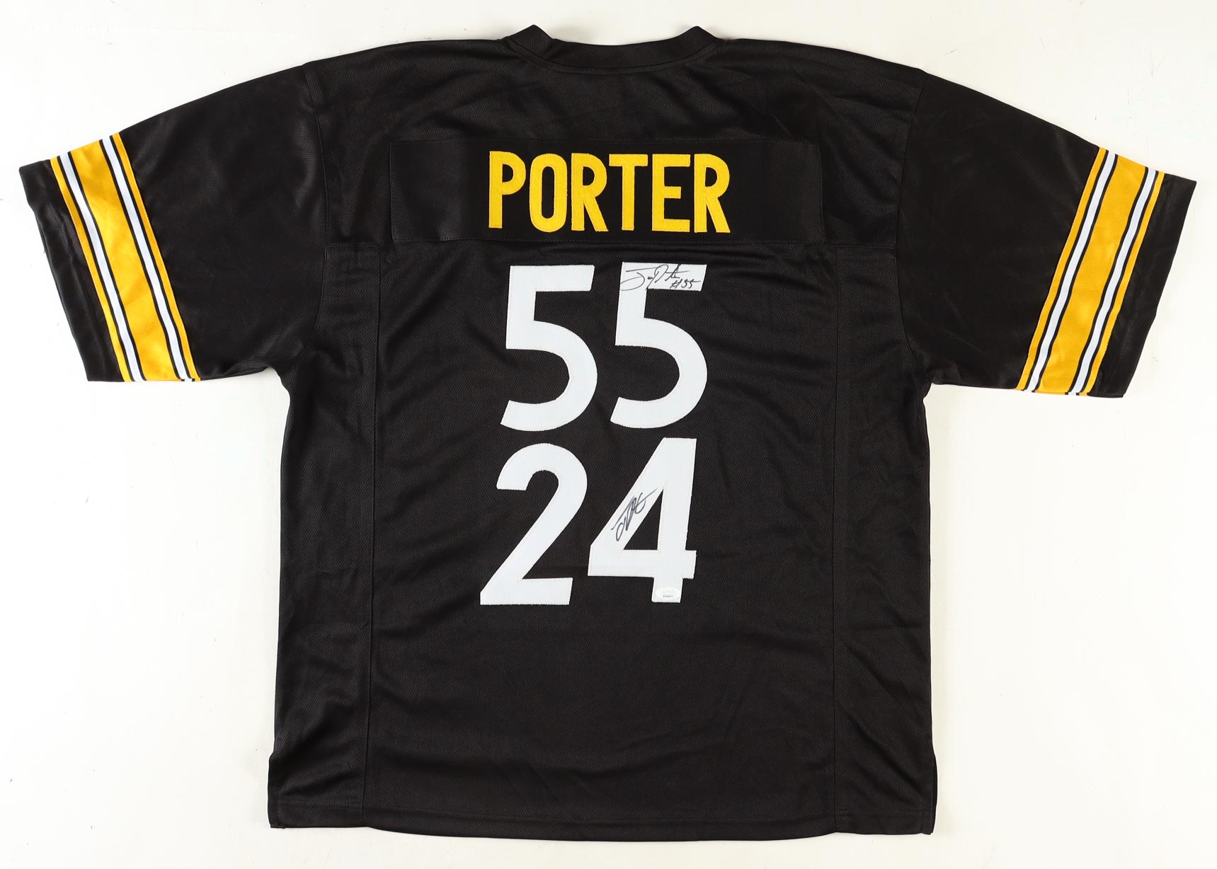 Custom jersey with everything sewn on, size XL. Hand-signed by Joey Porter Jr. and Joey Porter Sr.