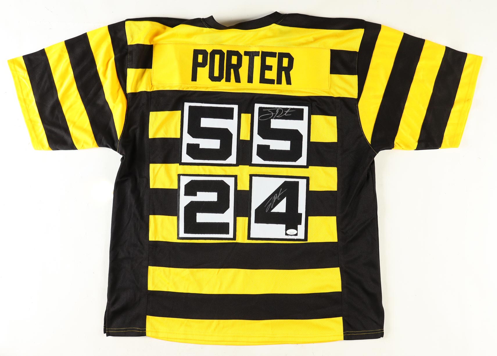 Custom jersey with everything sewn on, size XL. Hand-signed by Joey Porter Jr. and Joey Porter Sr.