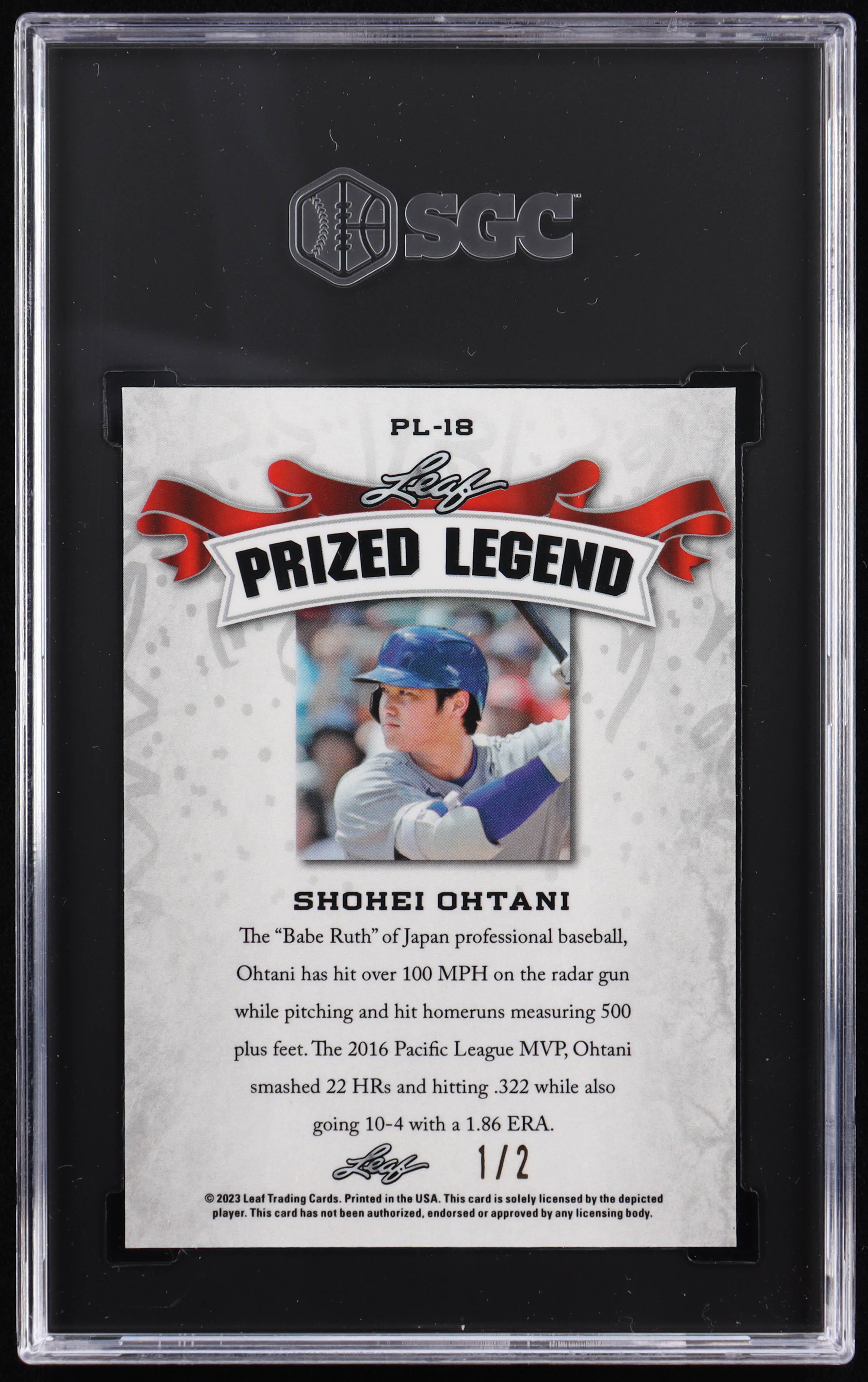 Shohei Ohtani 2023 Leaf Special Release Prized Legend Mojo Red #PL18 #1/2 (SGC 10)