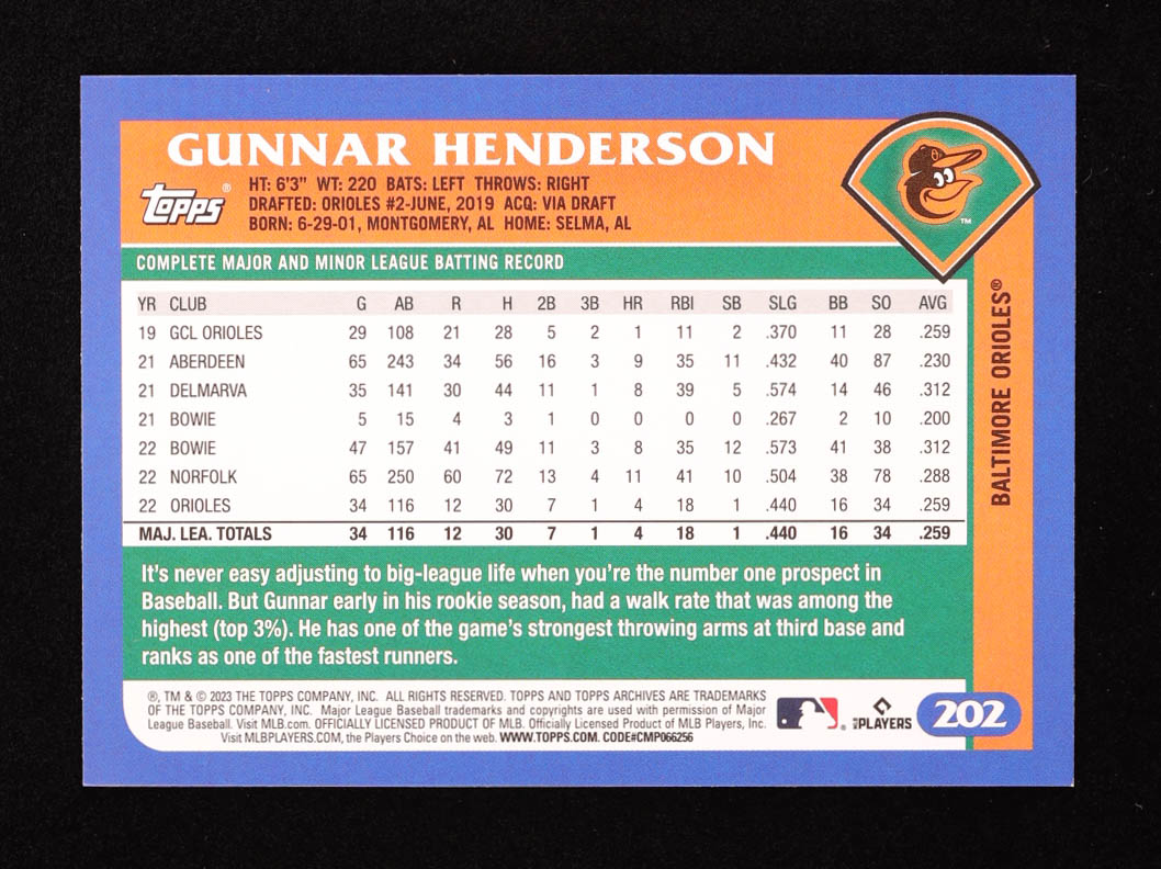 Gunnar Henderson 2023 Topps Royal Blue #202 RC