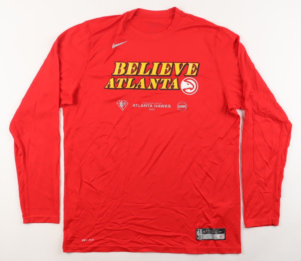 Nike shirt. Everything is printed on, size XLT. The shirt was team-issued during the 2022 NBA playoffs (Atlanta Hawks). Please note, this item has not been signed.