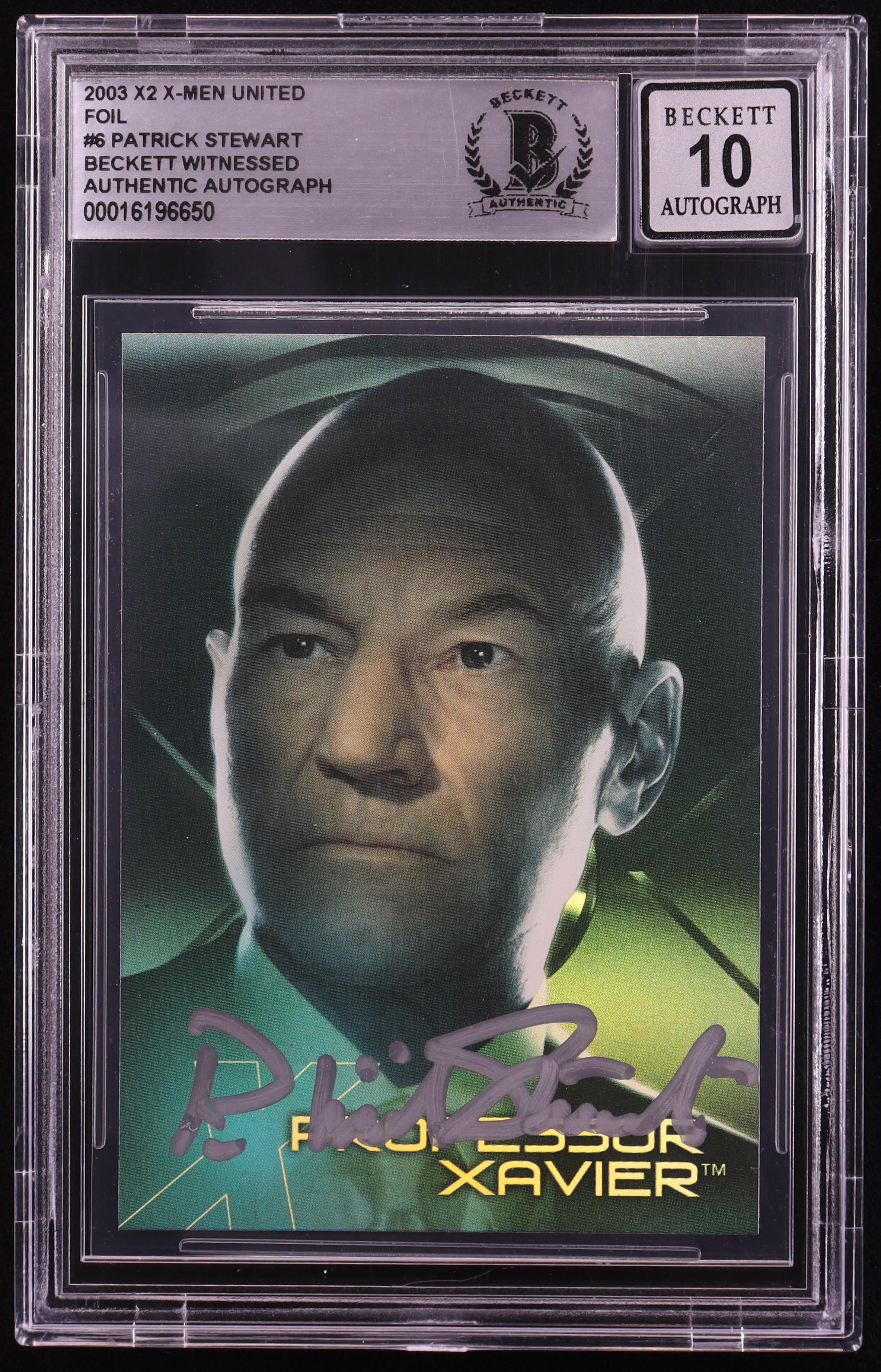 Patrick Stewart Signed 2003 Topps X2 X-Men United Foil #6 Professor Xavier (BGS | Autograph Grade 10)