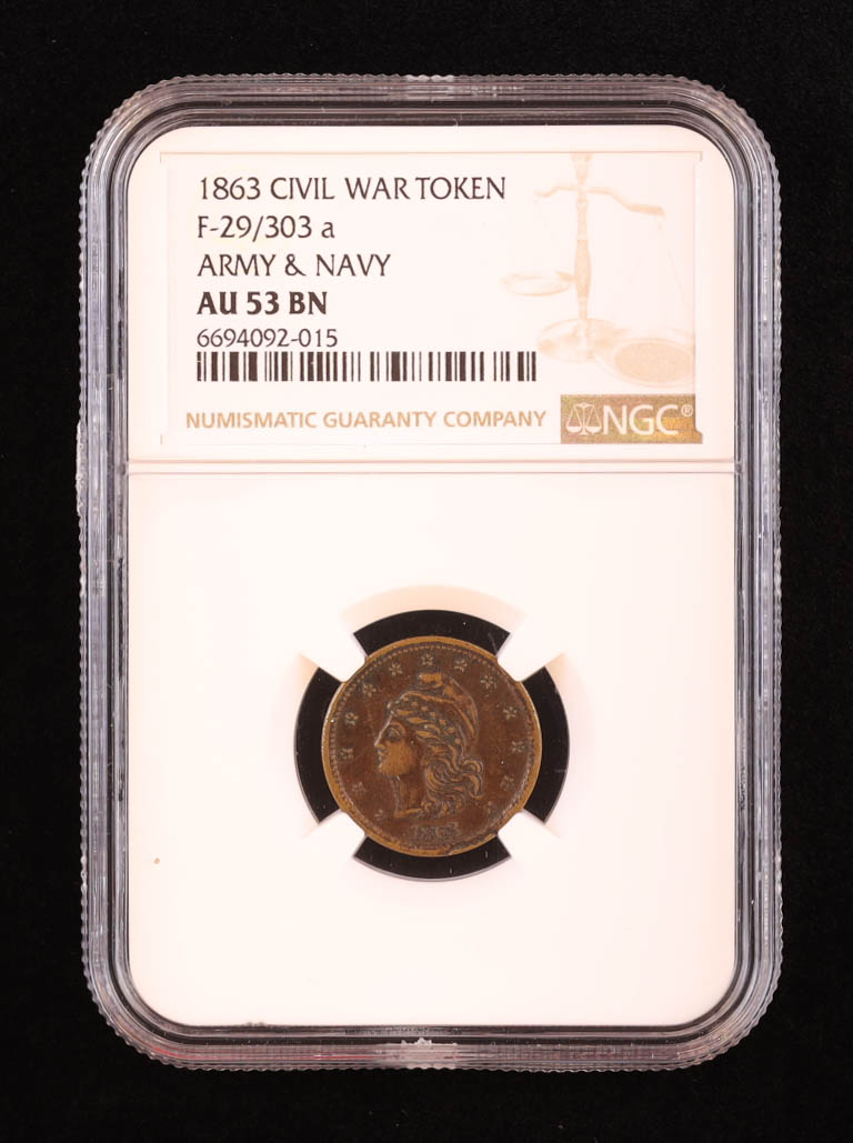 1863 Civil War Token - Army & Navy - F-29/303a (NGC AU53 BN)