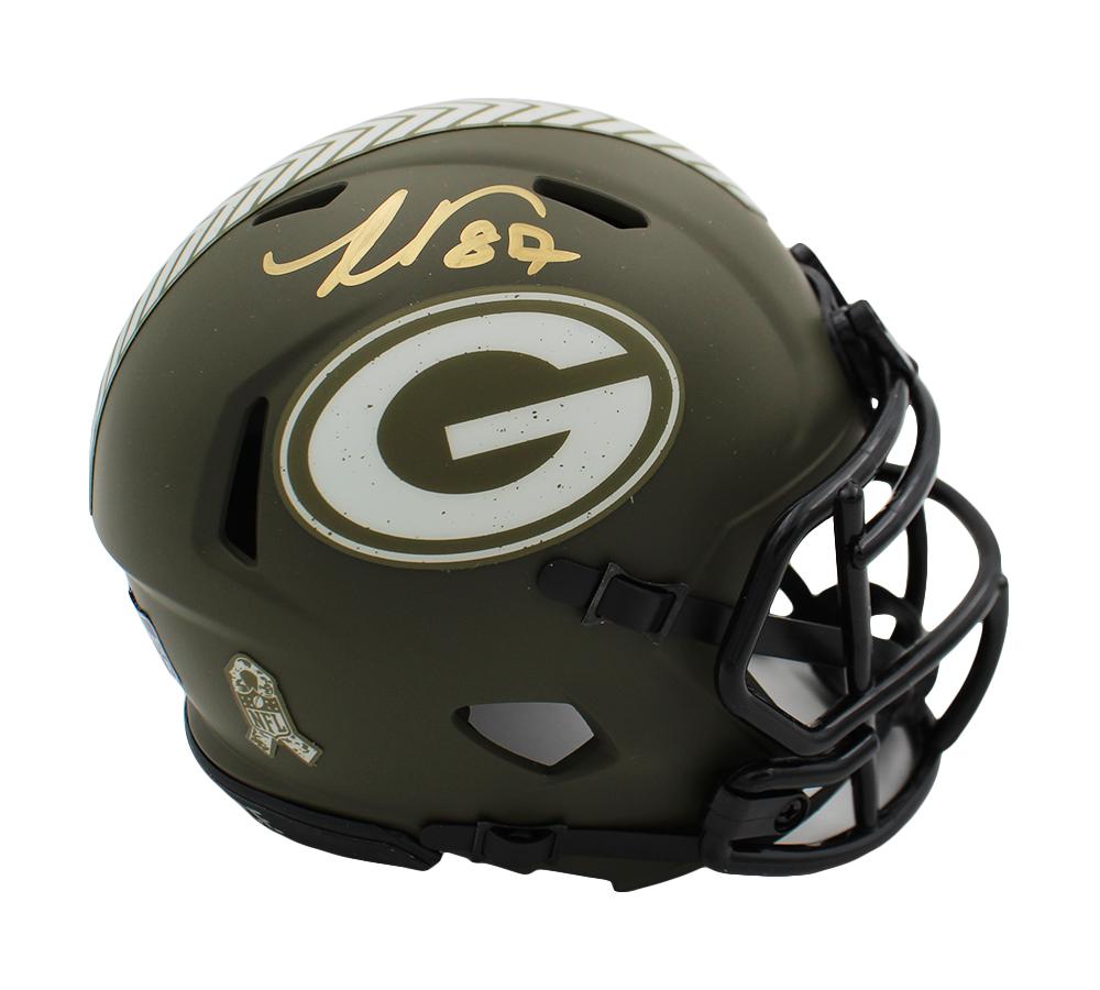 Riddell Green Bay Packers Salute to Service Speed mini helmet. Hand-signed by Romeo Doubs.