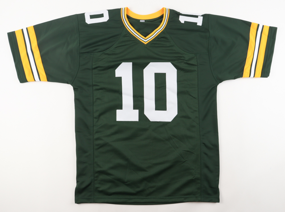 Custom jersey with everything sewn on, size XL. Hand-signed by Jordan Love.