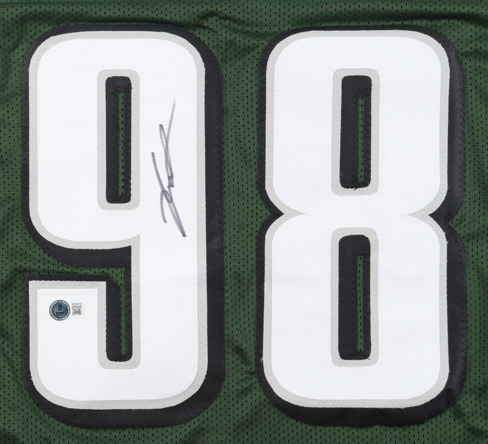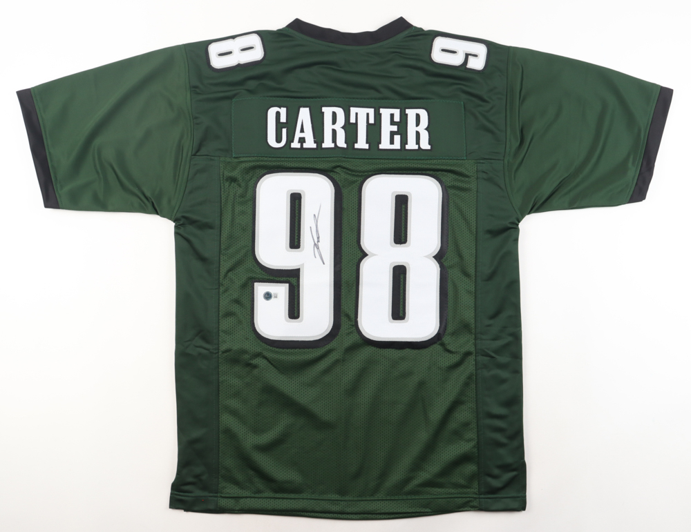 Custom jersey. Everything is sewn on, size L. Hand-signed by Jalen Carter.