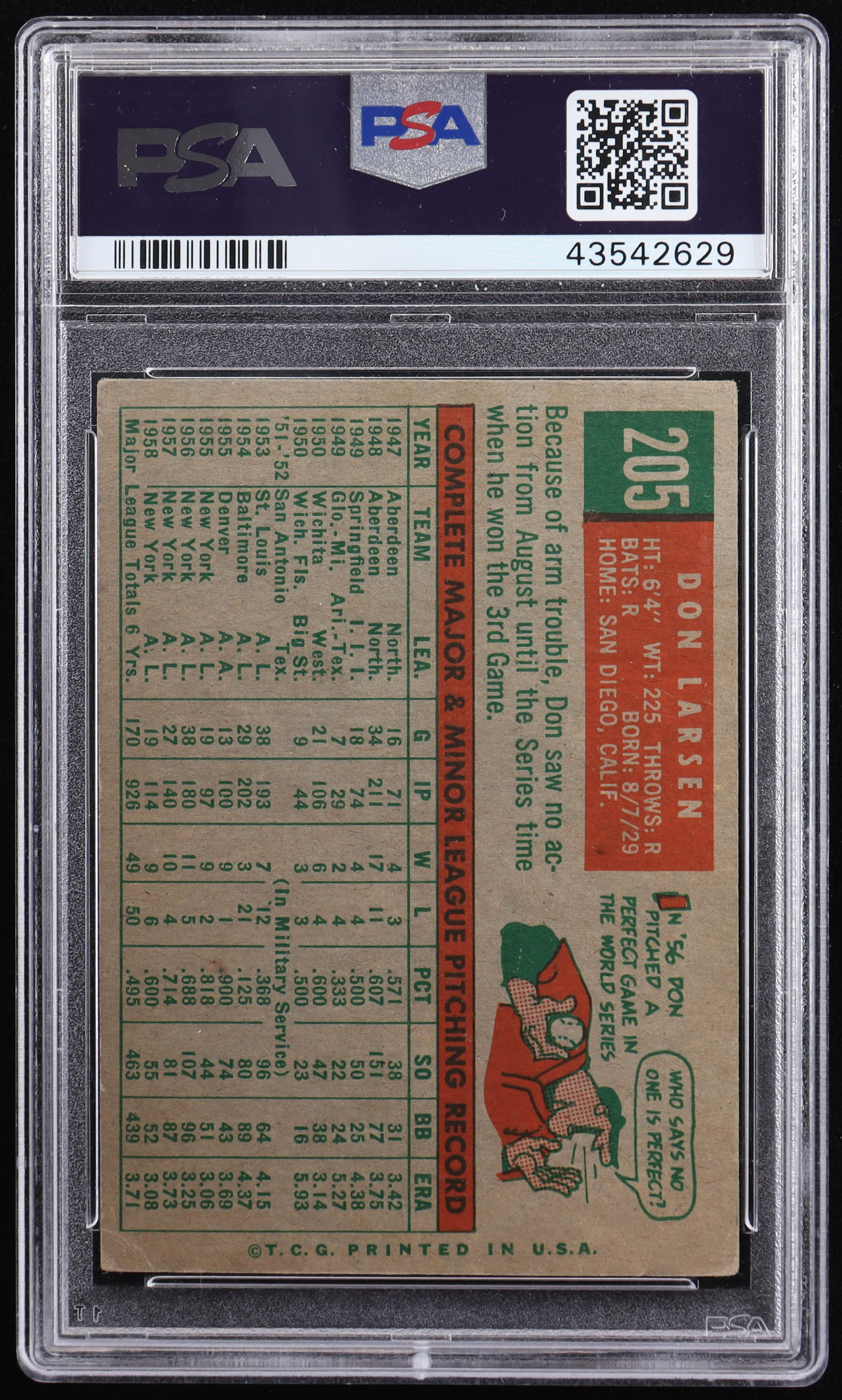 Don Larsen 1959 Topps #205 (PSA 3)