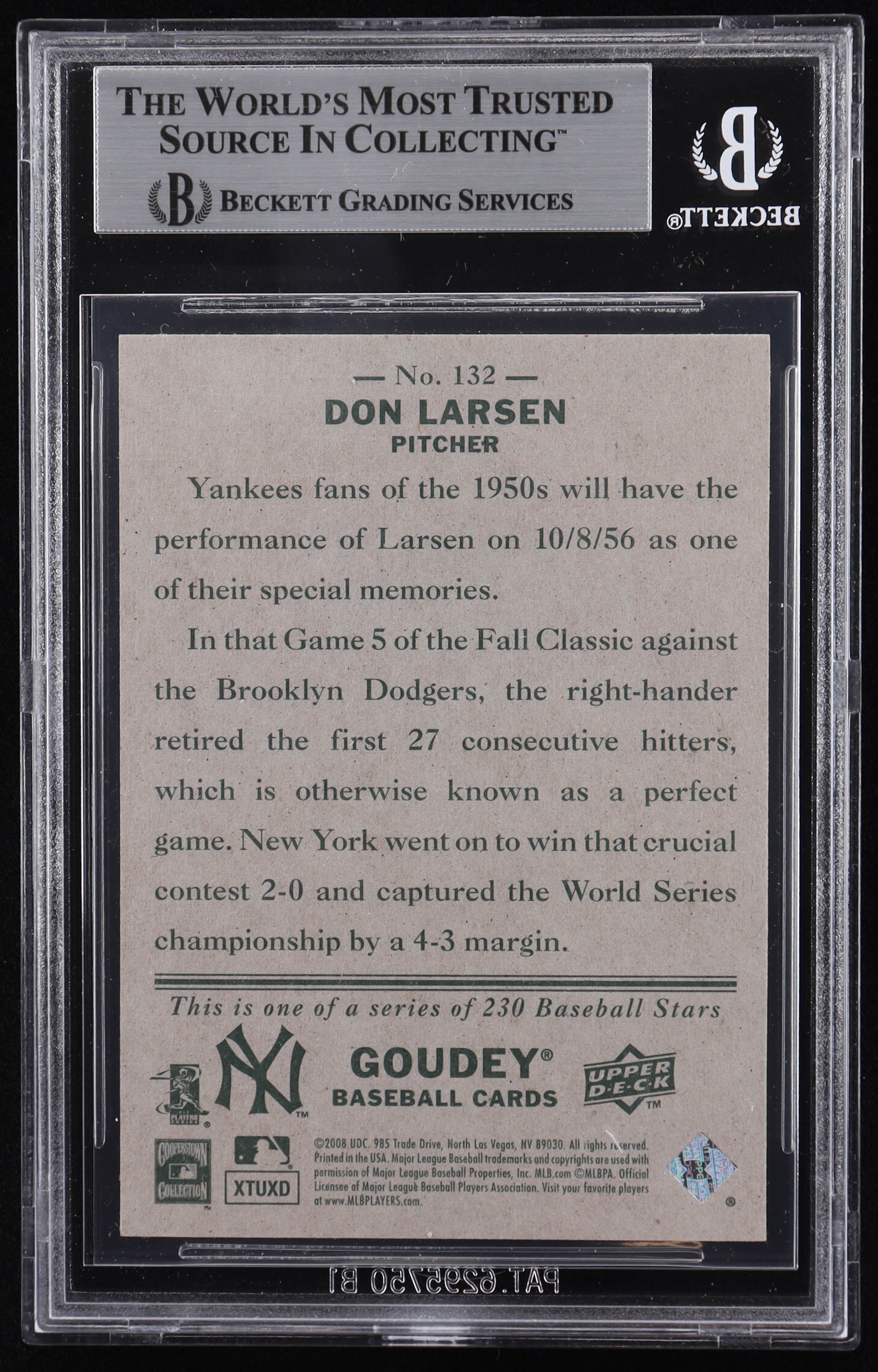 Don Larsen Signed 2008 Upper Deck Goudey #132 (BGS)