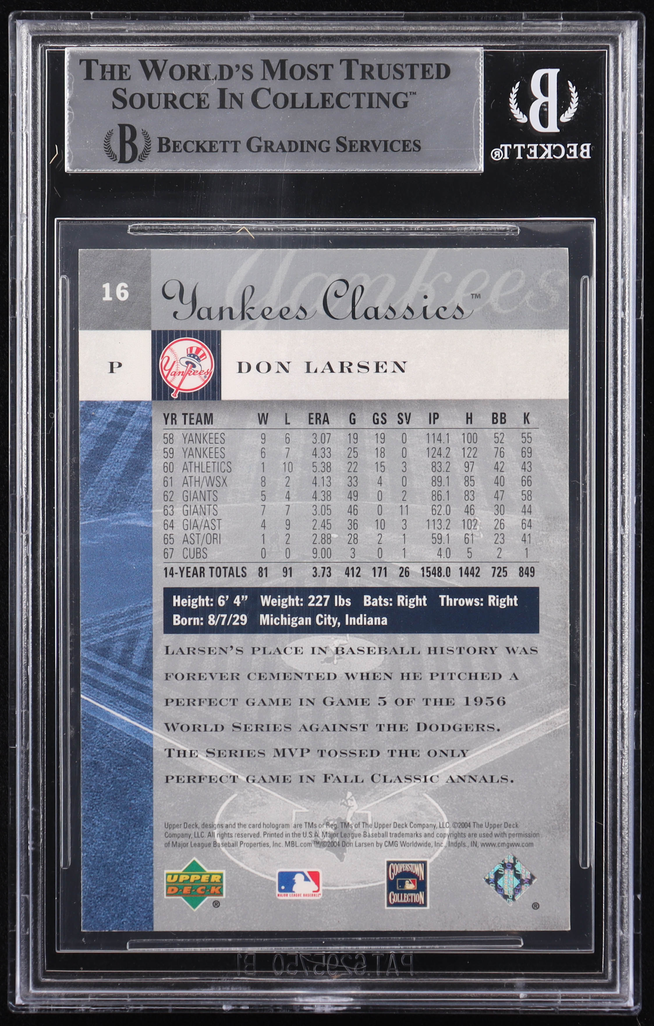 Don Larsen Signed 2004 UD Yankees Classics #16 (BGS)