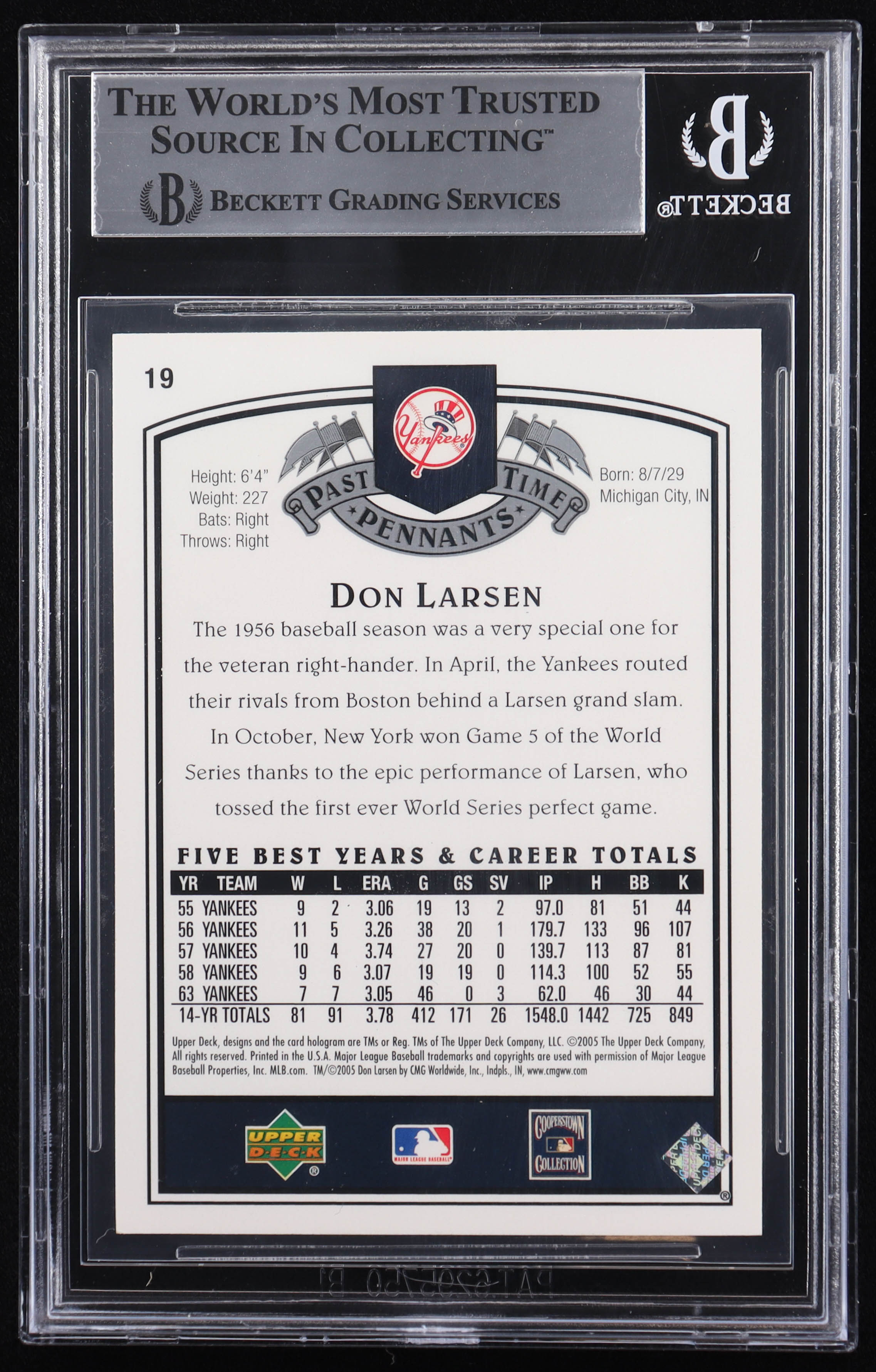 Don Larsen Signed 2005 UD Past Time Pennants #19 (BGS)