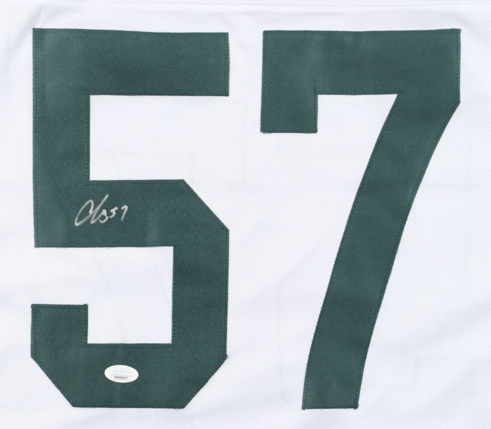 Custom style jersey with everything sewn on, size XL. Hand-signed by C. J. Mosley.