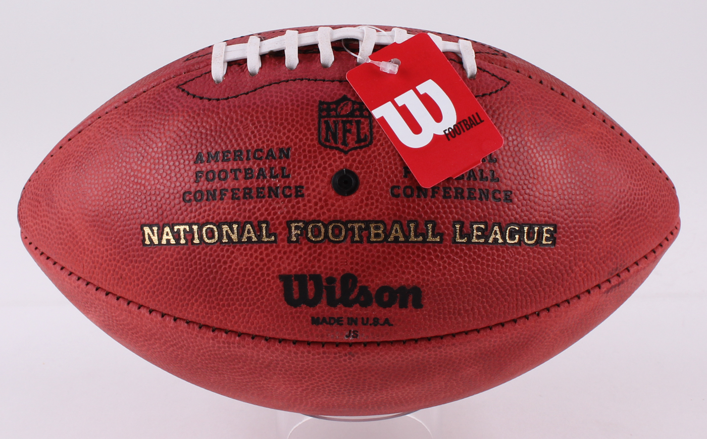 Wilson "The Duke" Official NFL Game Football. Hand-signed and inscribed in silver paint pen by Tom Brady (Patriots). Please note, there is some minor staining in the football.