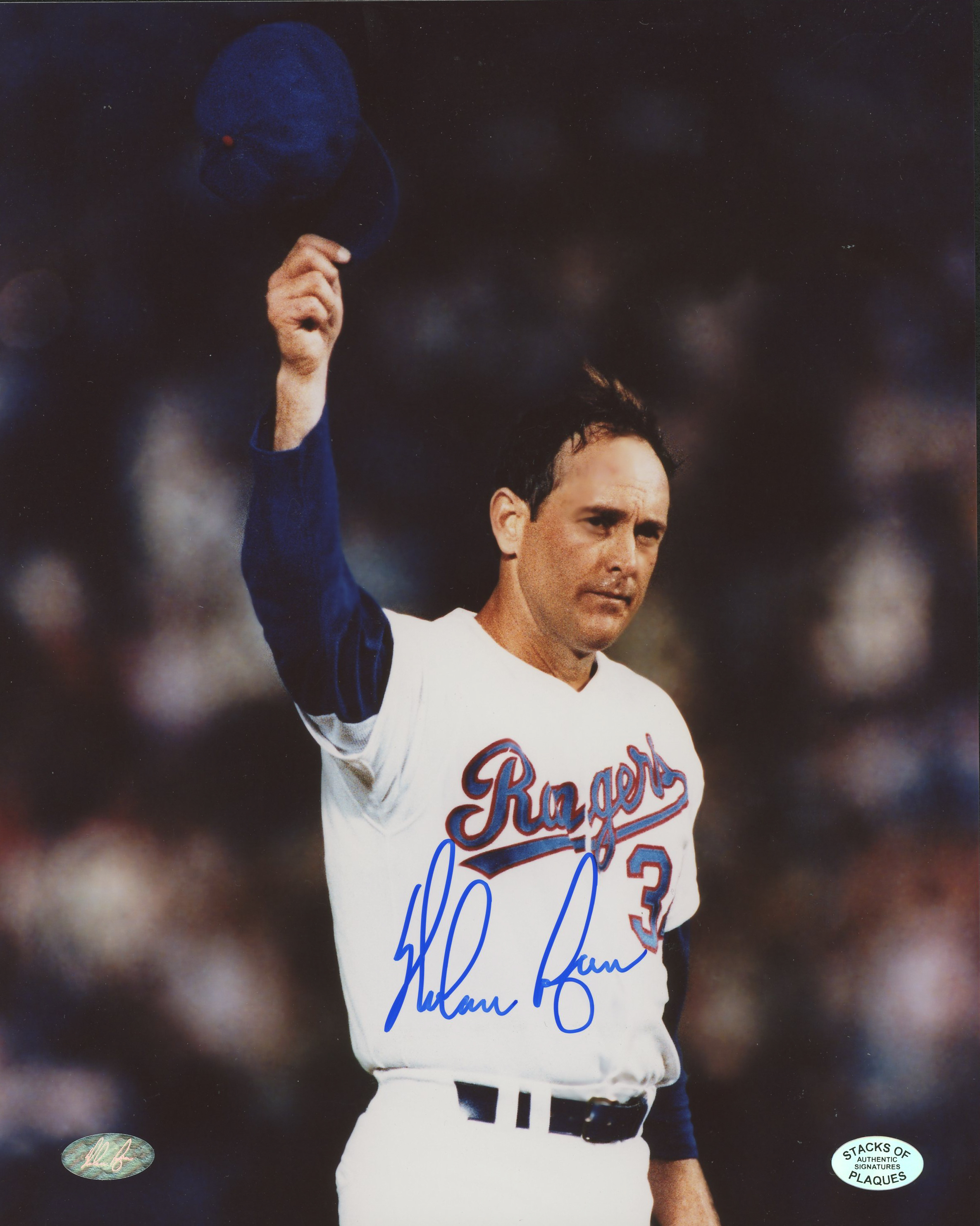 The autograph includes an official Stacks of Plaques - Est. 1985, Celebrating 30 years in the business - hologram and matching COA, as well as an official Nolan Ryan Hologram for authenticity purposes.