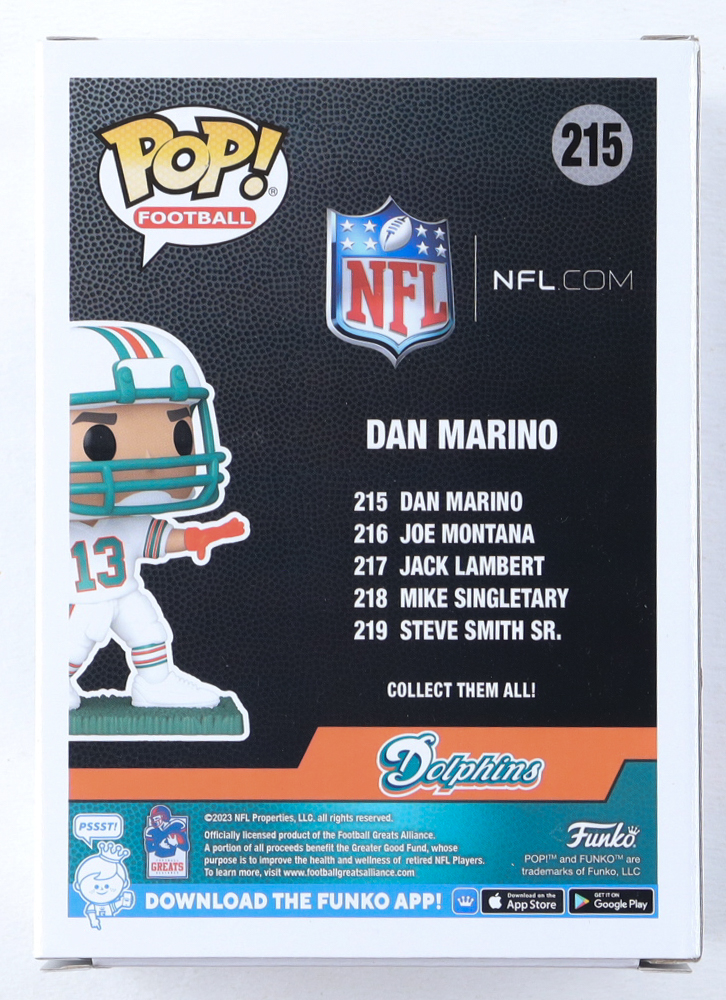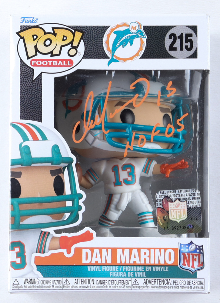 Funko Pop! vinyl figure that measures approximately 4" tall in size and has been hand-signed and inscribed by Dan Marino (Miami Dolphins, HOF).