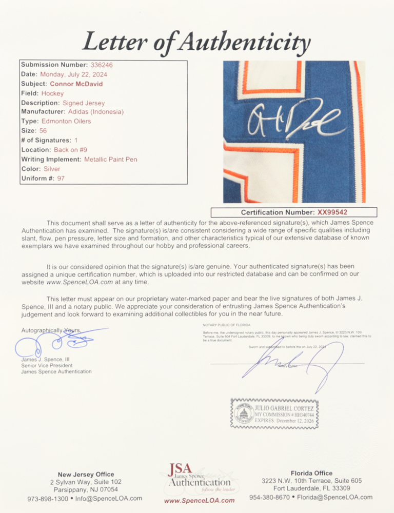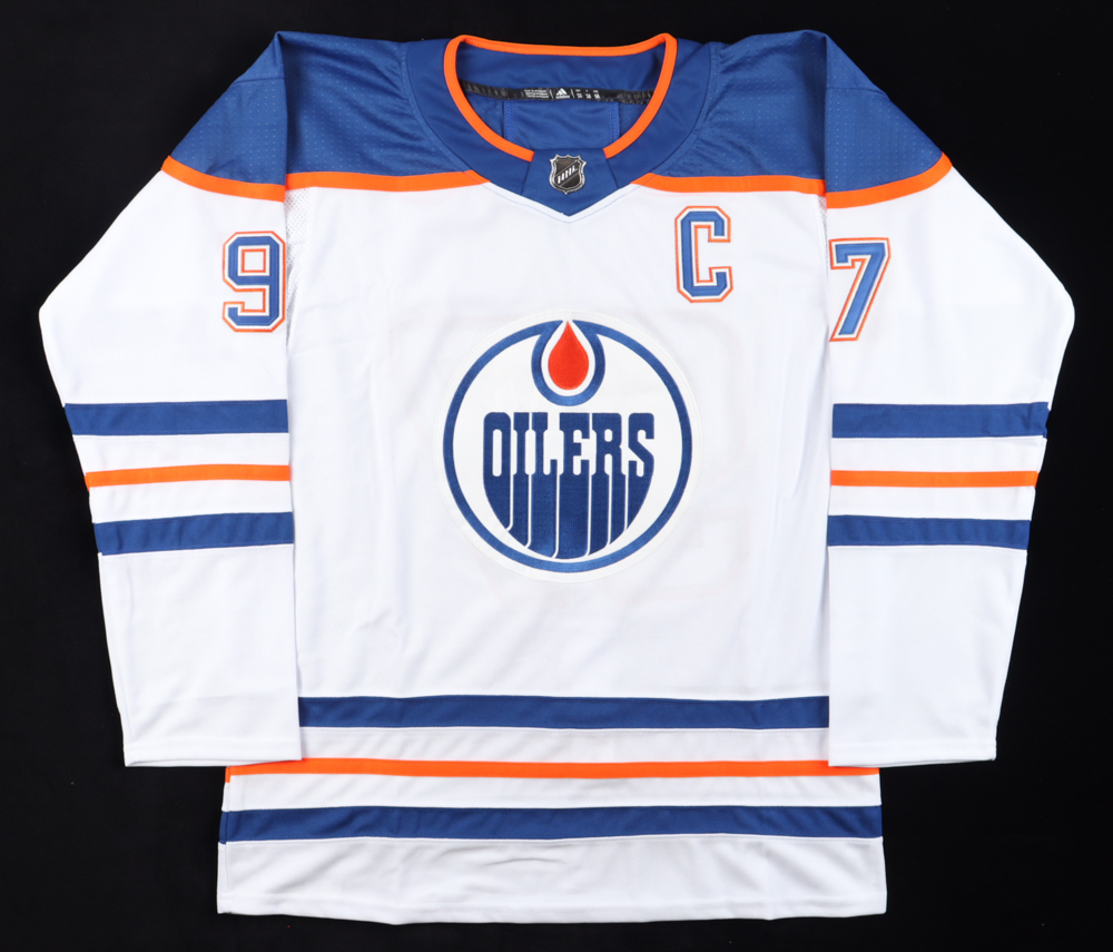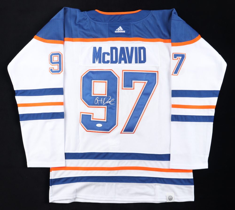 Adidas jersey with everything sewn on, size 56. Hand-signed by Connor McDavid.