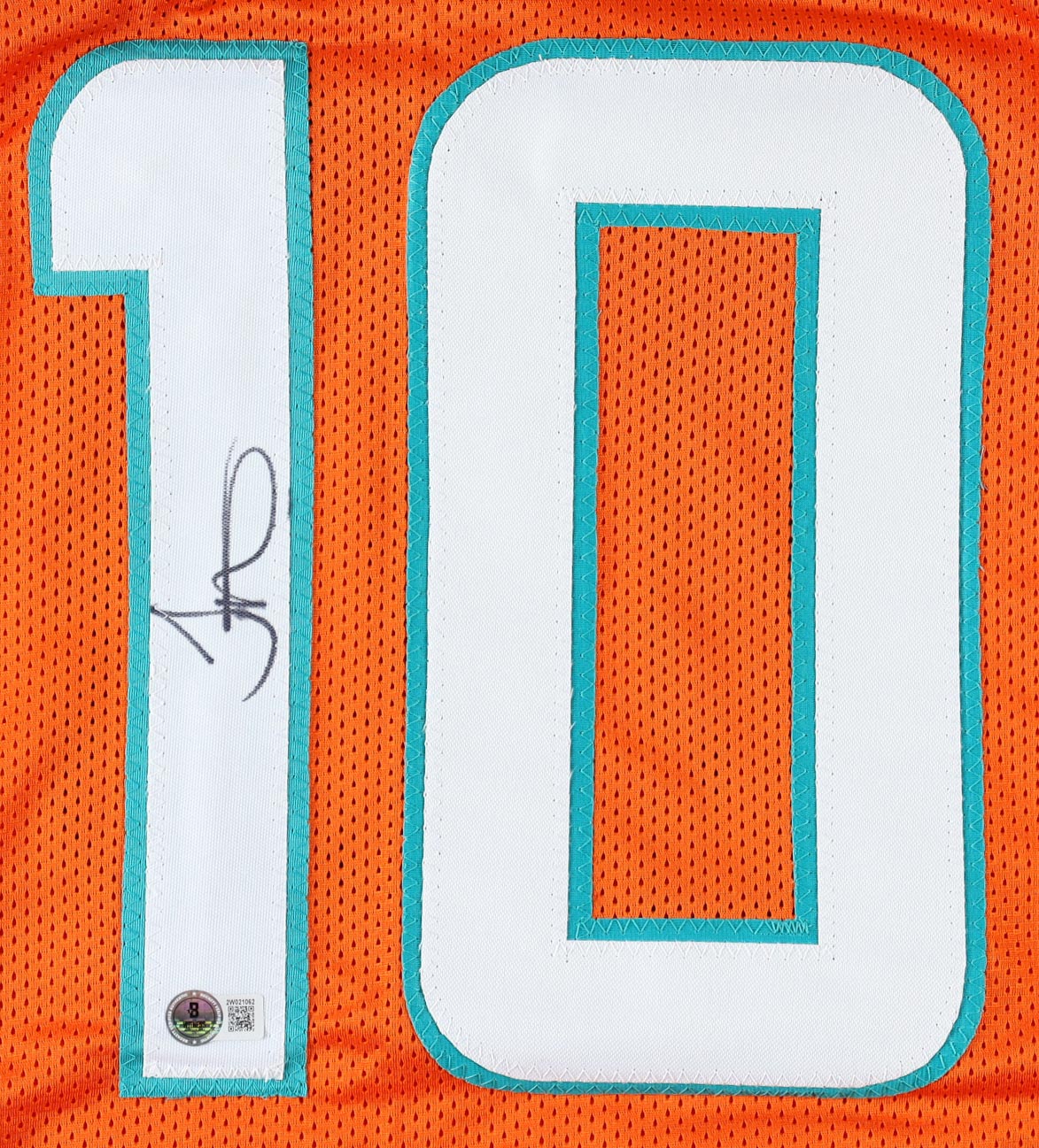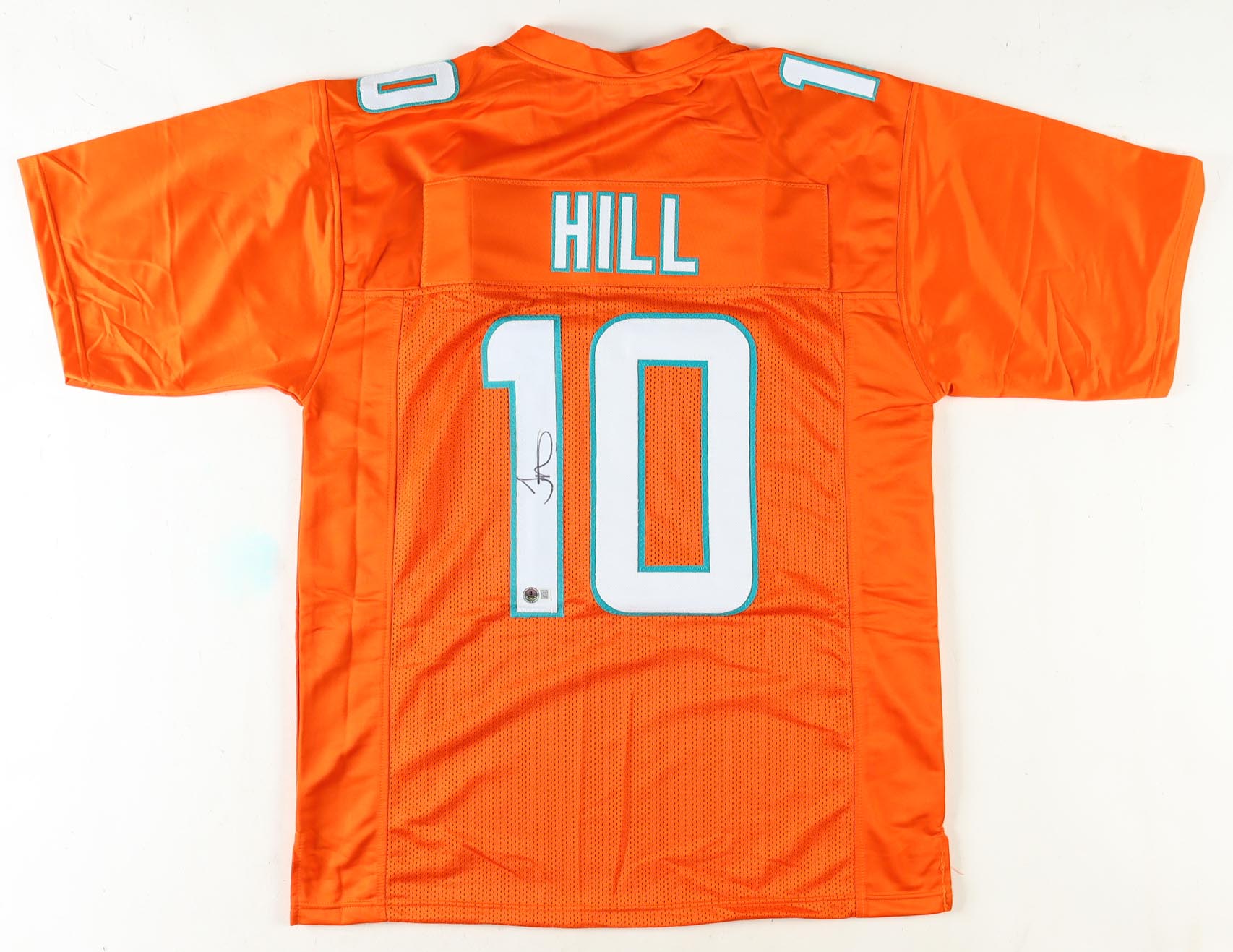 Custom jersey with everything sewn on, size XL. Hand-signed by Tyreek Hill (Miami Dolphins).