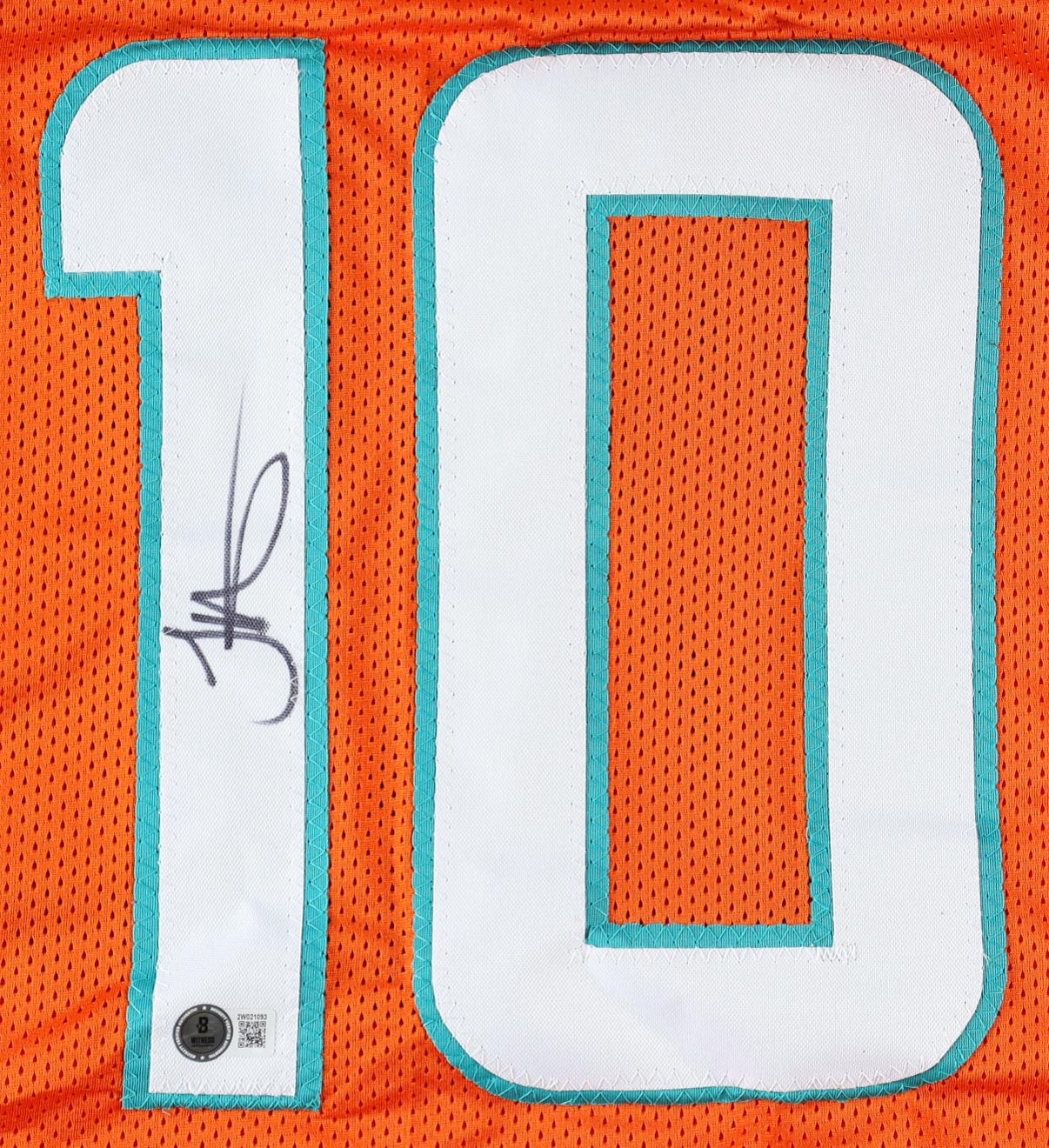 Custom jersey with everything sewn on, size XL. Hand-signed by Tyreek Hill (Miami Dolphins).