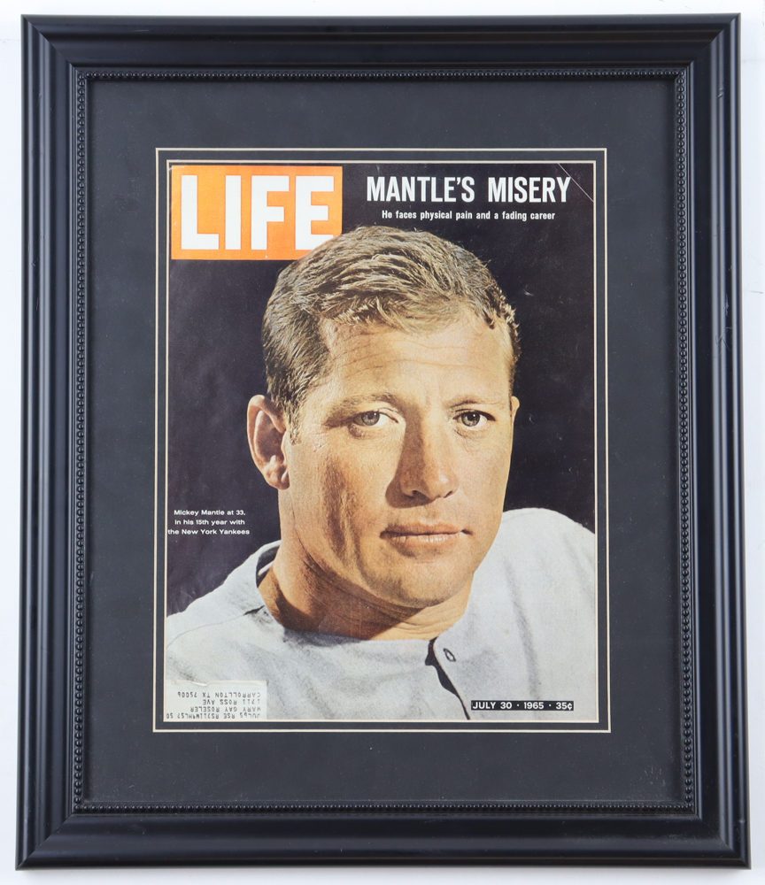 Custom framed display measures approximately 17" x 20" in size and features a Mickey Mantle (D. 1995, New York Yankees, HOF) LIFE Magazine cover dated July 30, 1965. Please note, the display is unsigned.
