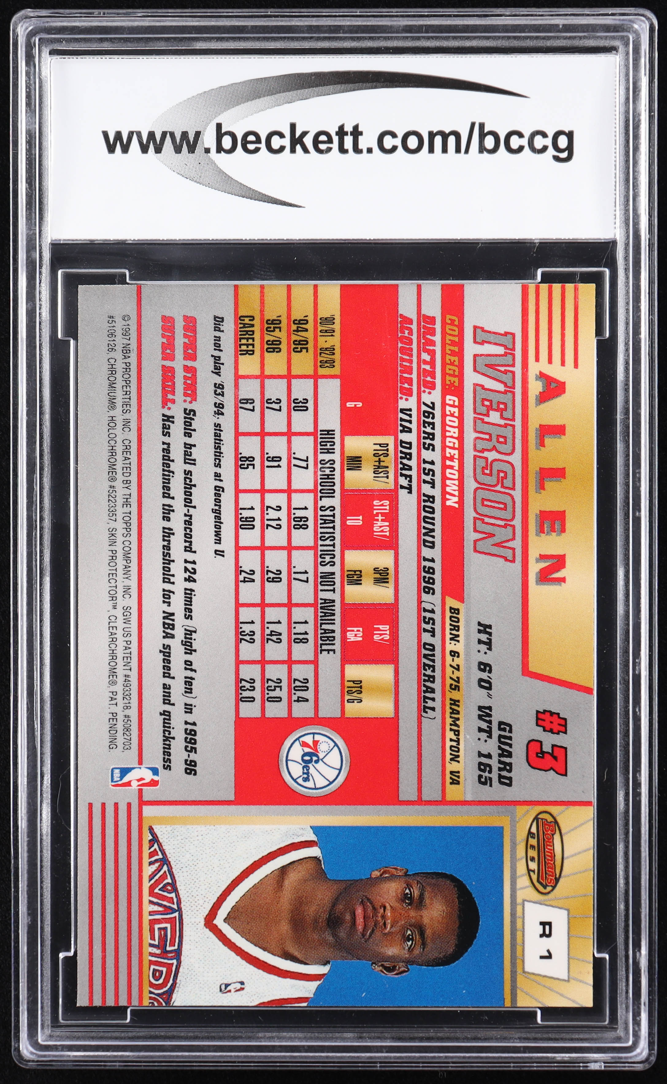 Allen Iverson 1996-97 Bowman's Best #R1 RC (BCCG 10)