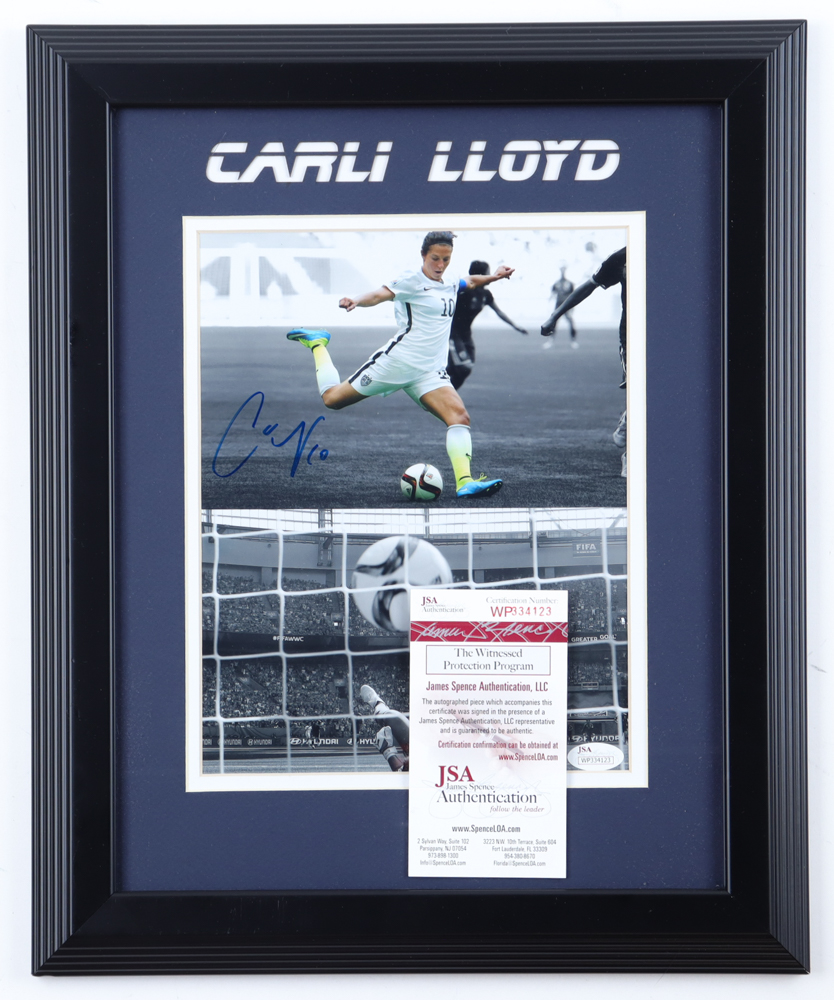Custom frame measures 13" x 17" in size and features a photo that has been hand-signed by Carli Lloyd (U.S. National Team).