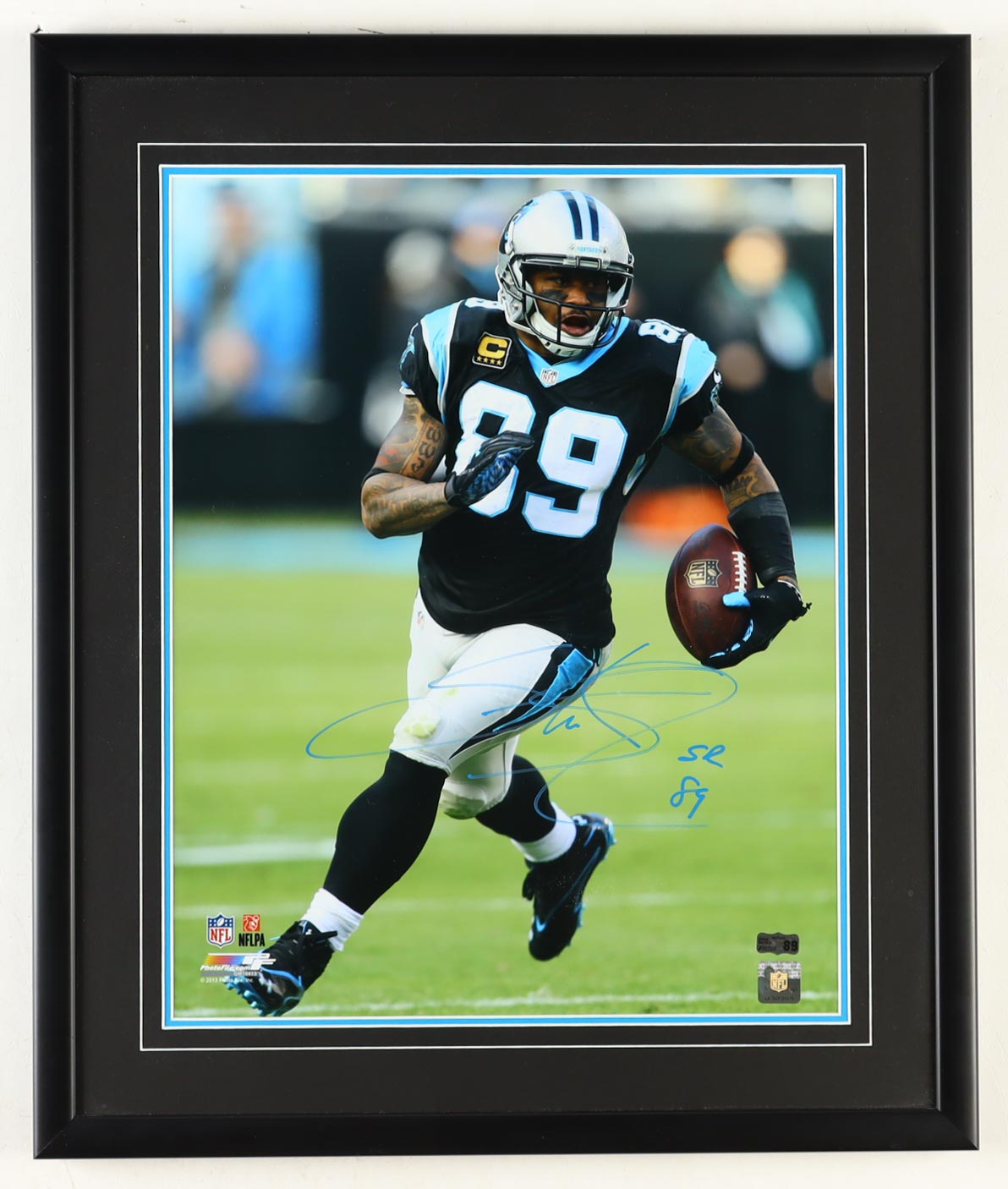 Custom frame measures approximately 22" x 26" in size and features a photo that has been hand-signed by Steve Smith Sr. (Carolina Panthers).