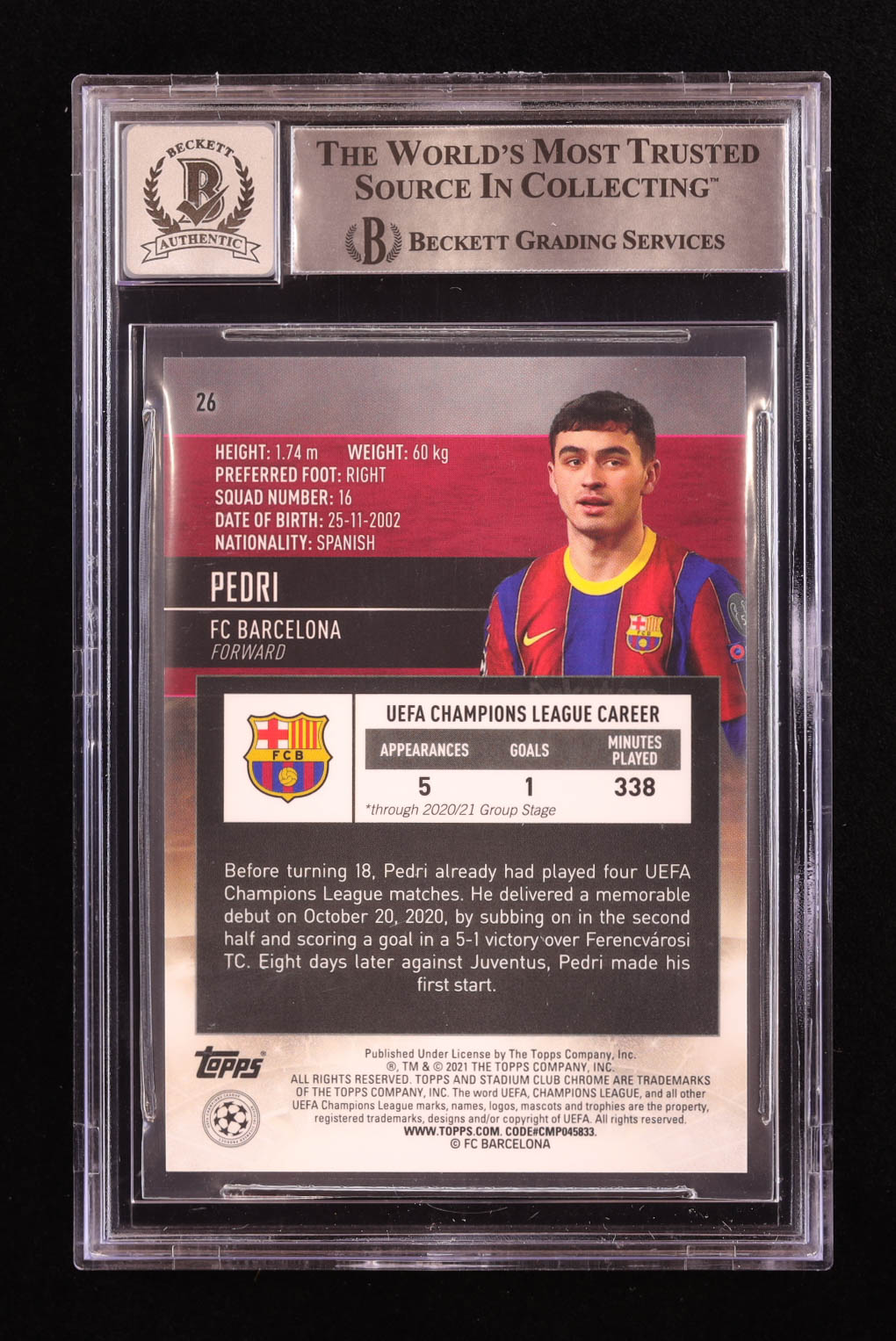 Pedri Signed 2020-21 Stadium Club Chrome UCL #26 RC (BGS | Autograph Grade 10)
