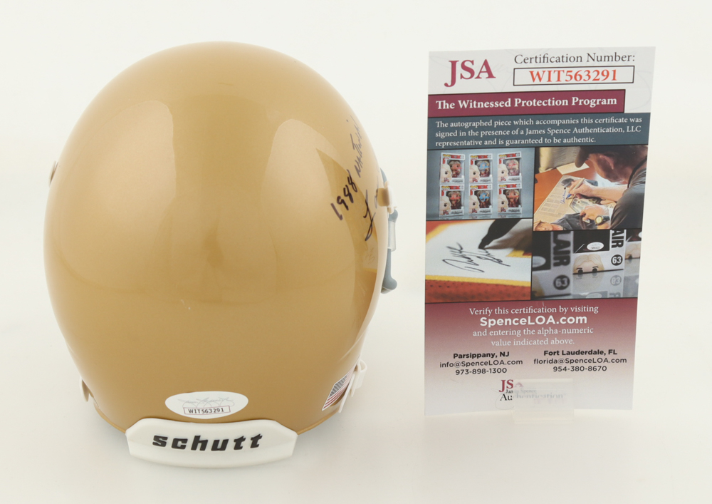 Schutt Notre Dame Fighting Irish mini helmet. Hand-signed and inscribed by Lou Holtz.