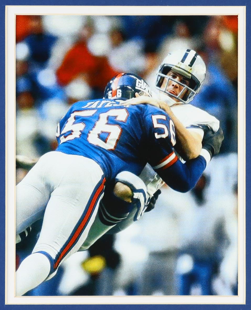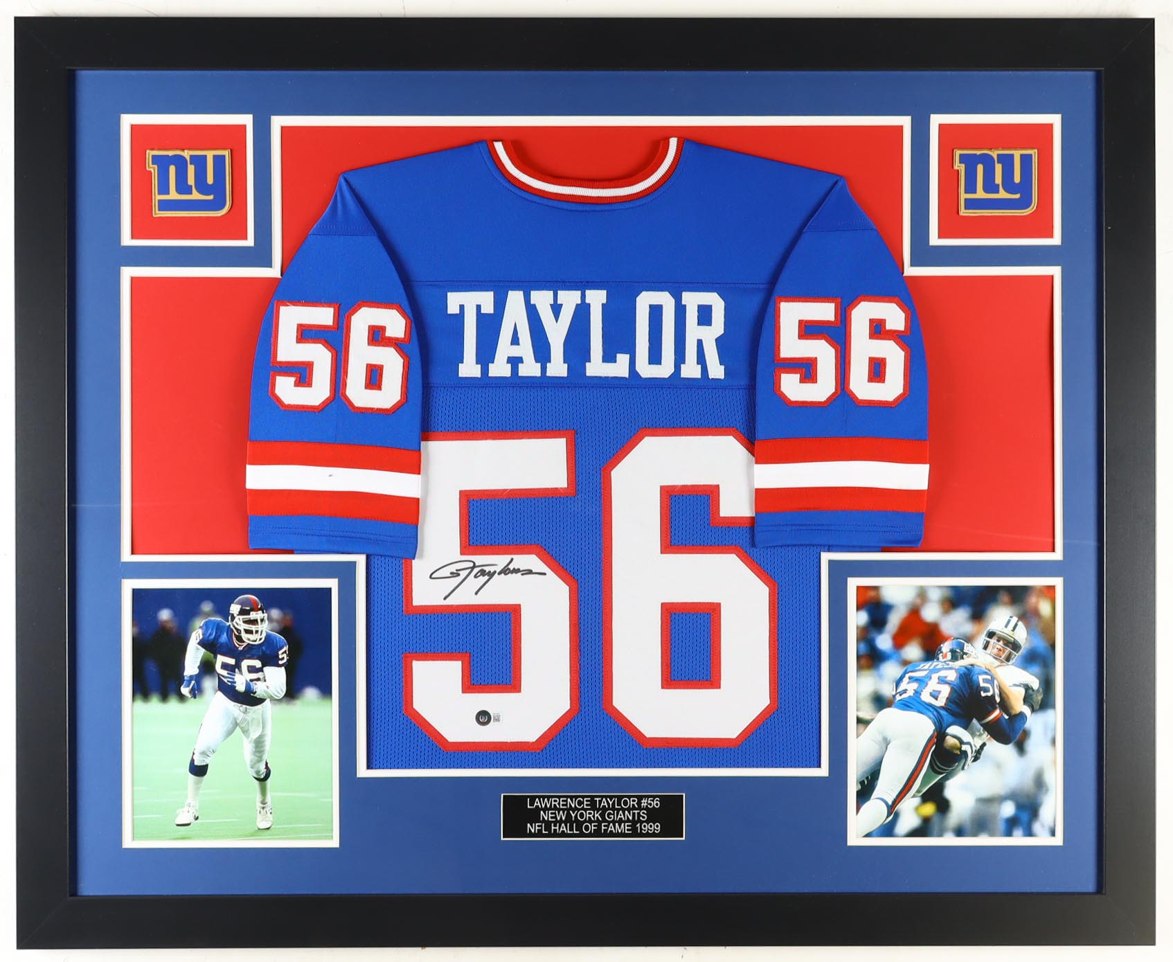 Custom frame measures approximately 35.5” x 43.5” in size and features a jersey that has been hand-signed by Lawrence Taylor (HOF).