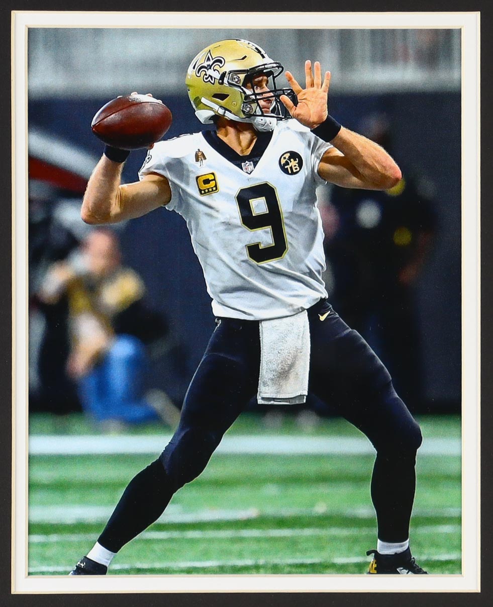 Custom frame display measures approximately 35.5" x 43.5" in size and features a jersey that has been hand-signed by Drew Brees.