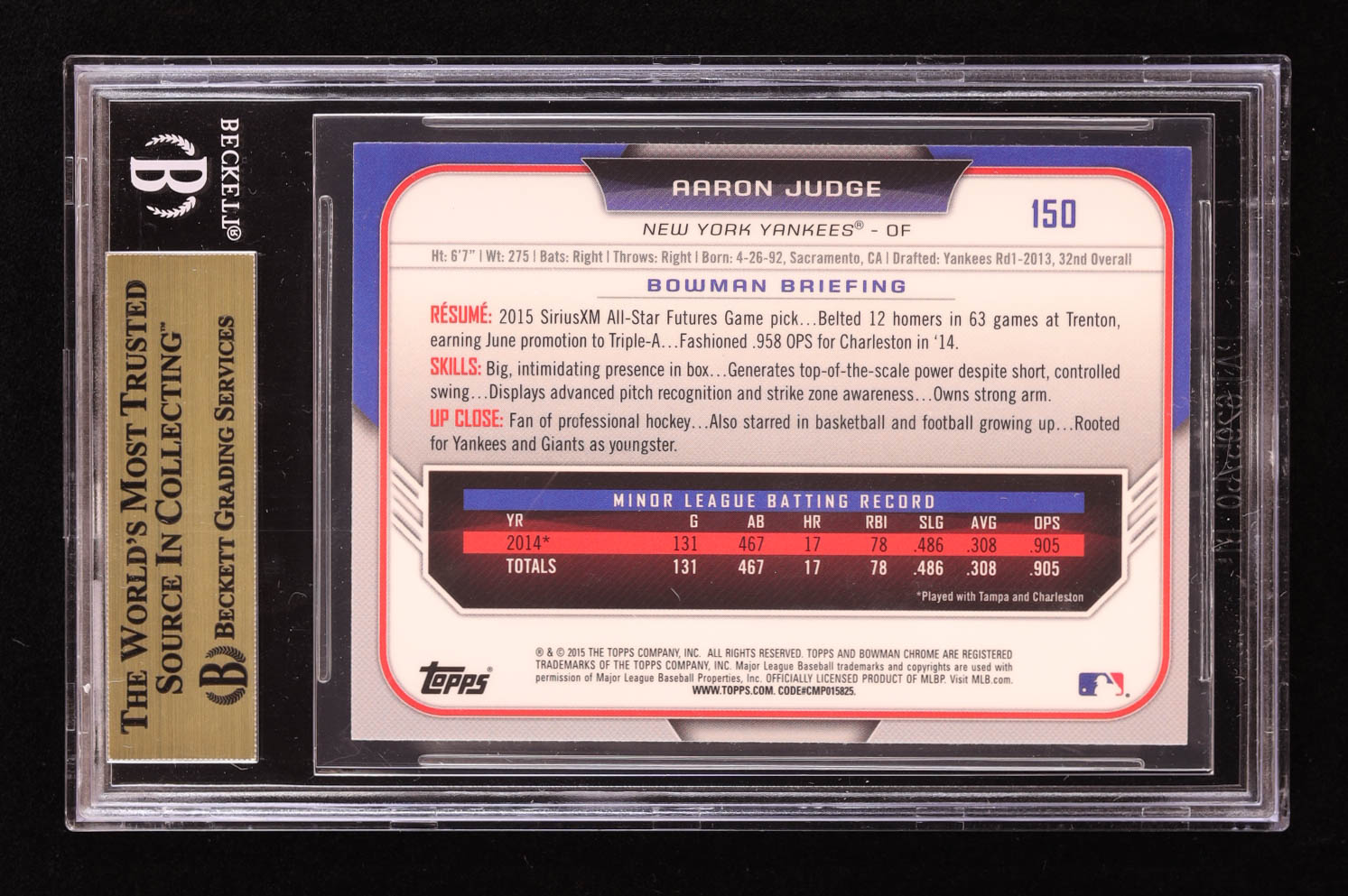 Aaron Judge 2015 Bowman Chrome Draft #150 RC (BGS 9.5)
