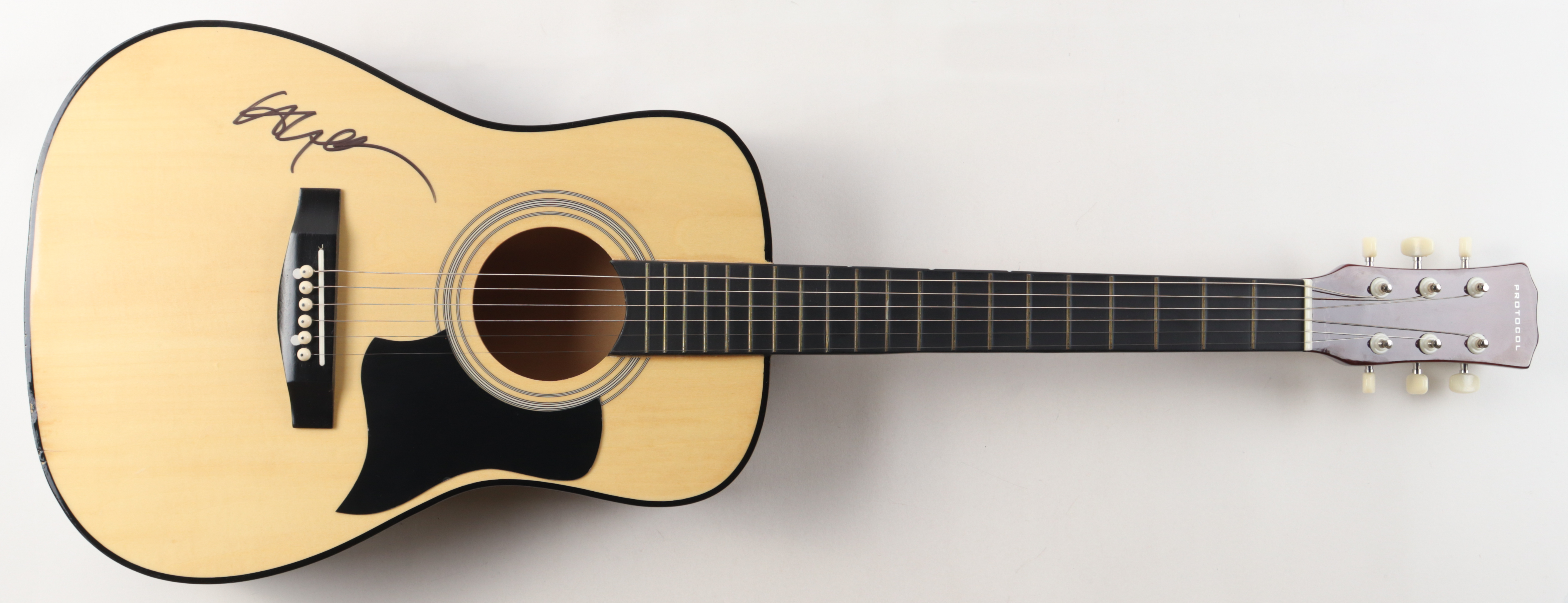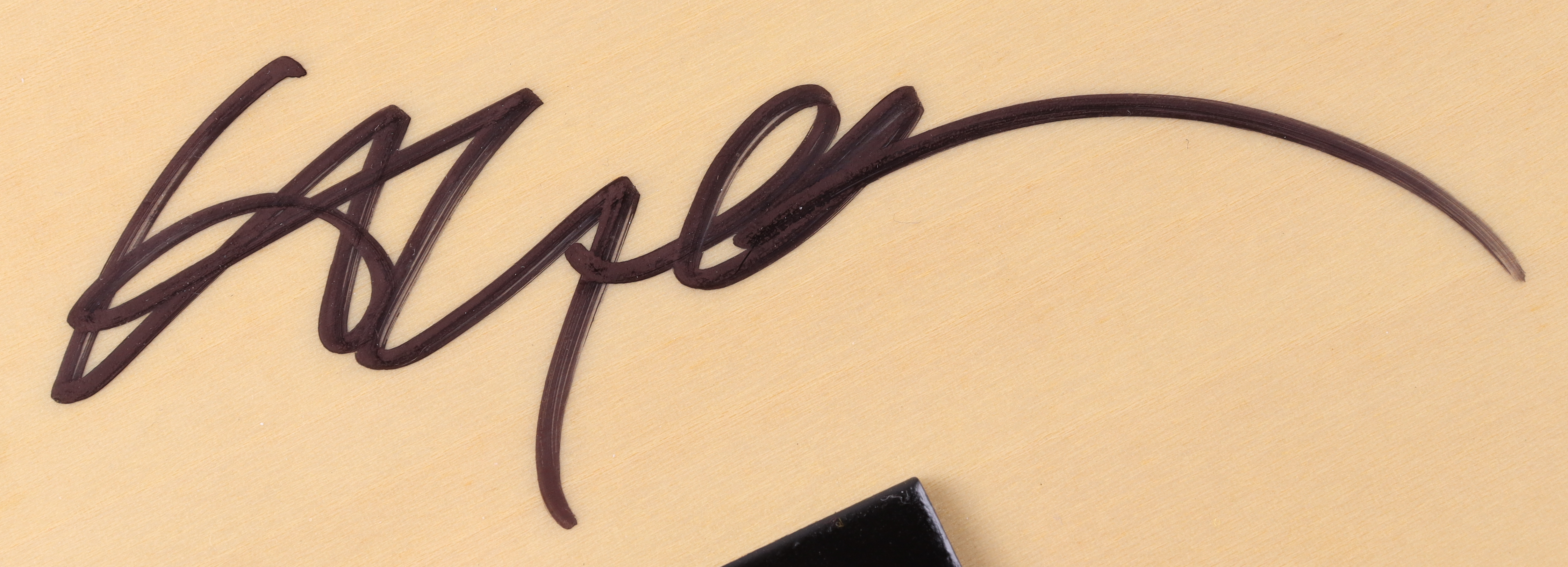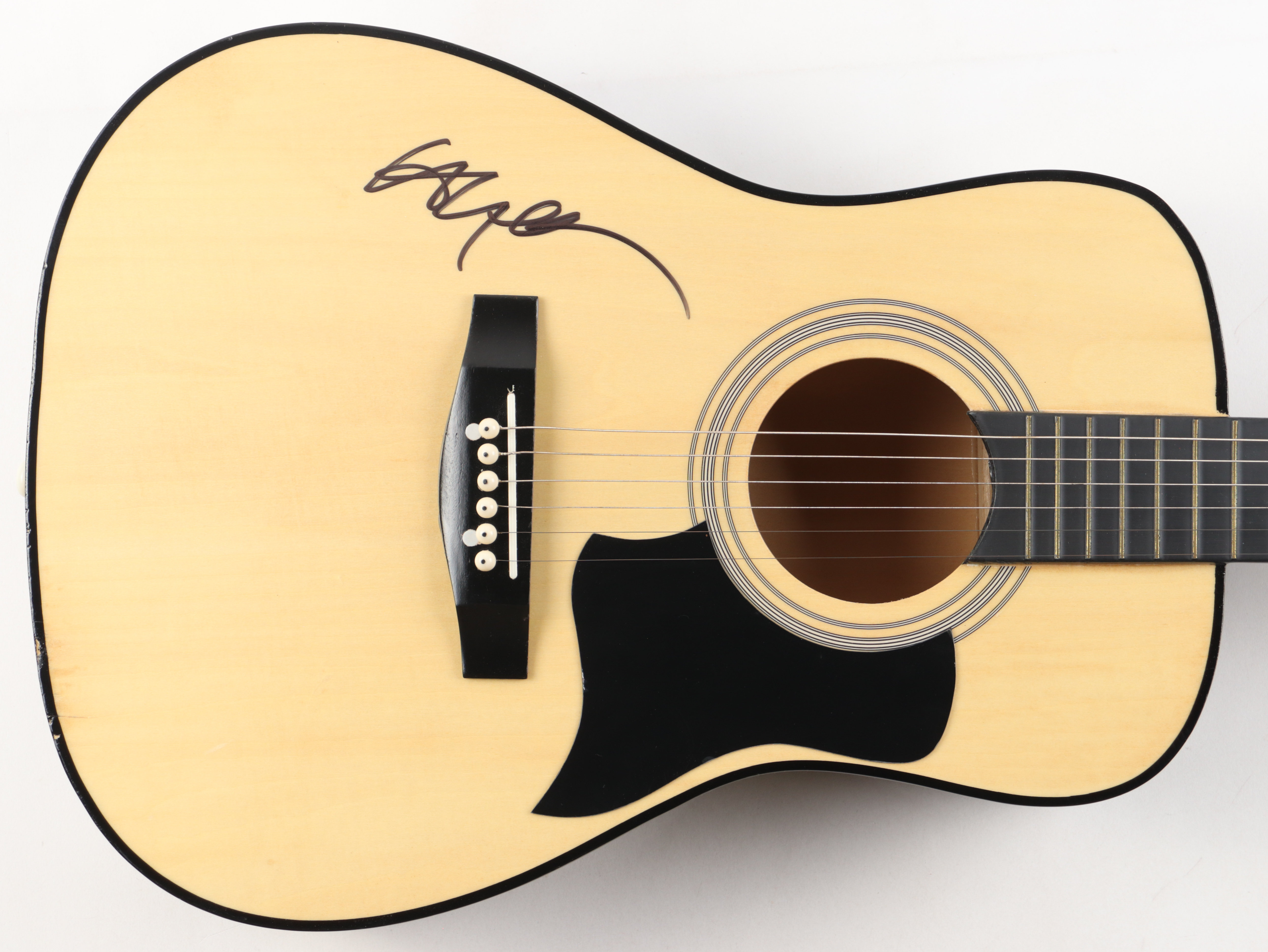 Full-size (39") acoustic guitar has been hand-signed on the body of the guitar by music legend, Willie Nelson! Please note, the bottom of the body of the guitar shows minor wear.