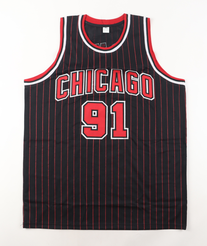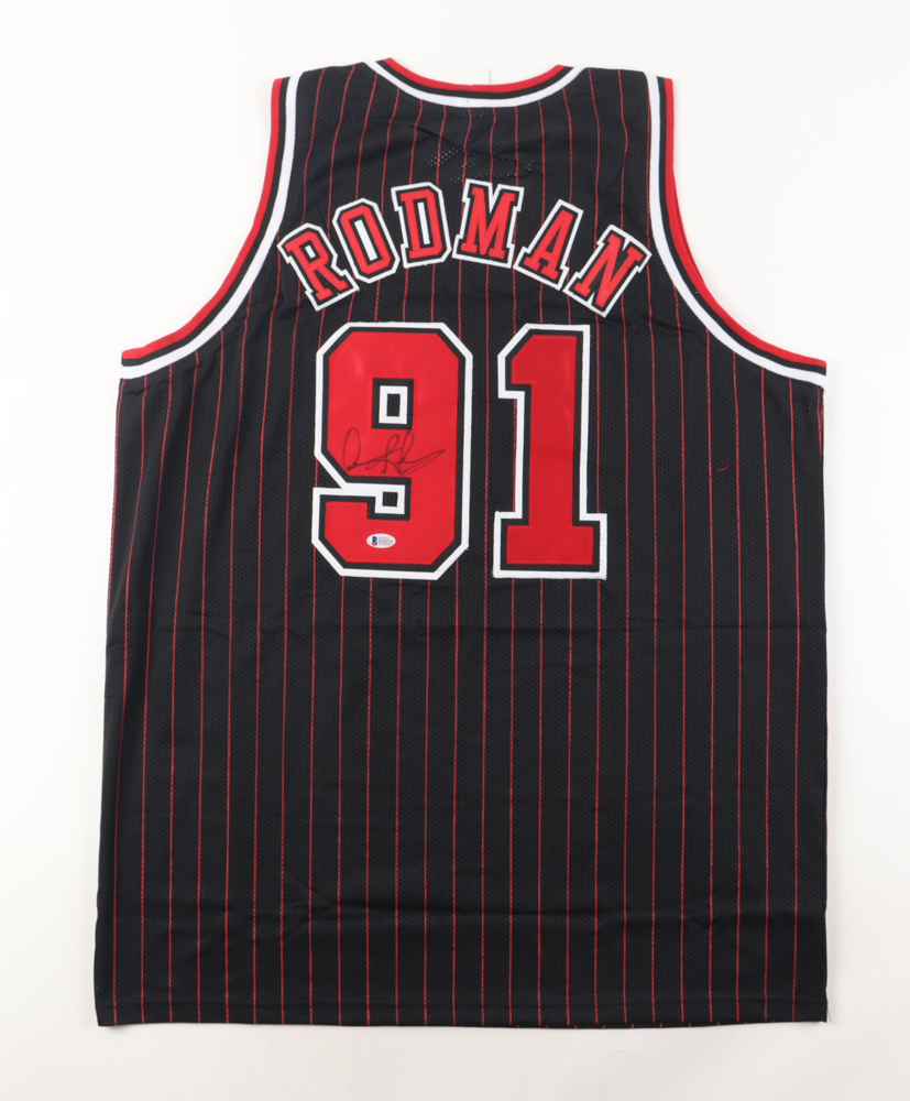 Custom jersey with everything sewn on, size XL. Has been hand-signed by Dennis Rodman (HOF).