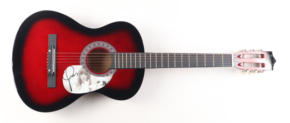 Acoustic guitar measures approximately 39" in length and has been hand-signed on the pick-guard by Taylor Swift.