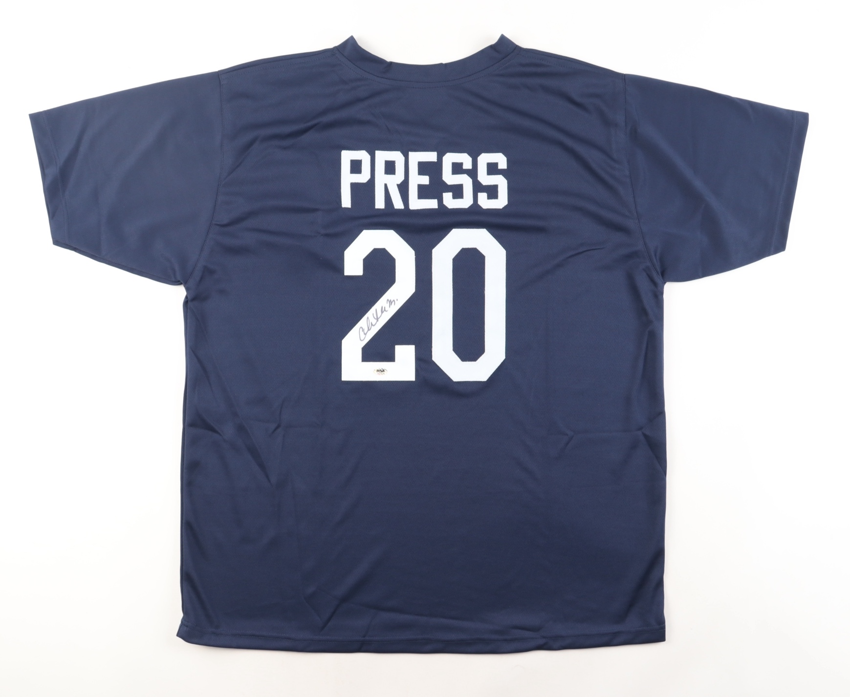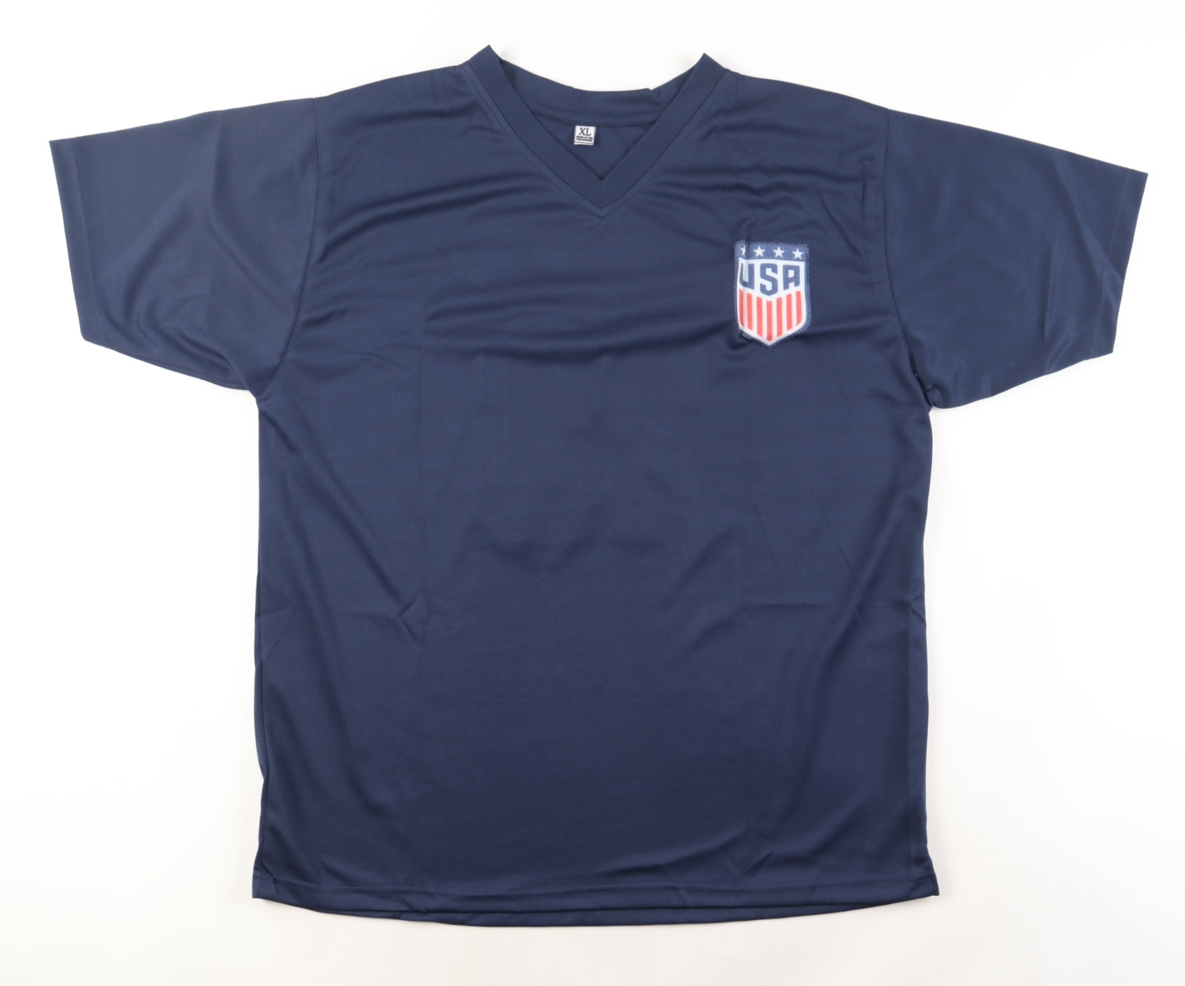 Custom jersey. Everything is sewn on, size XL. Hand-signed by Christen Press. Please note, glue is visible through the reverse number.