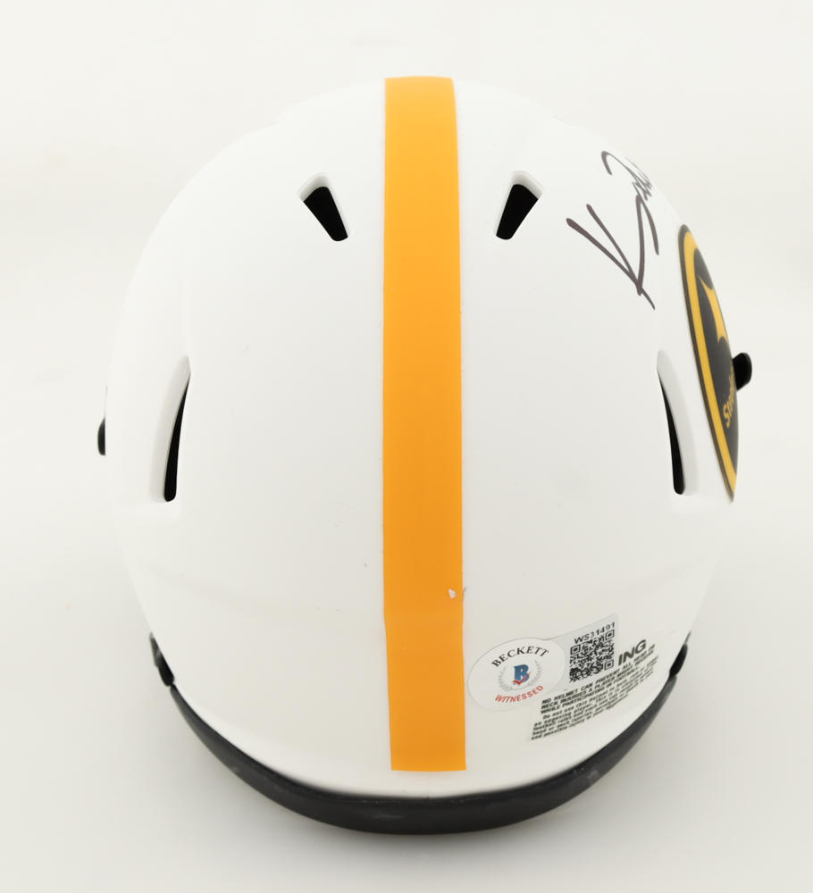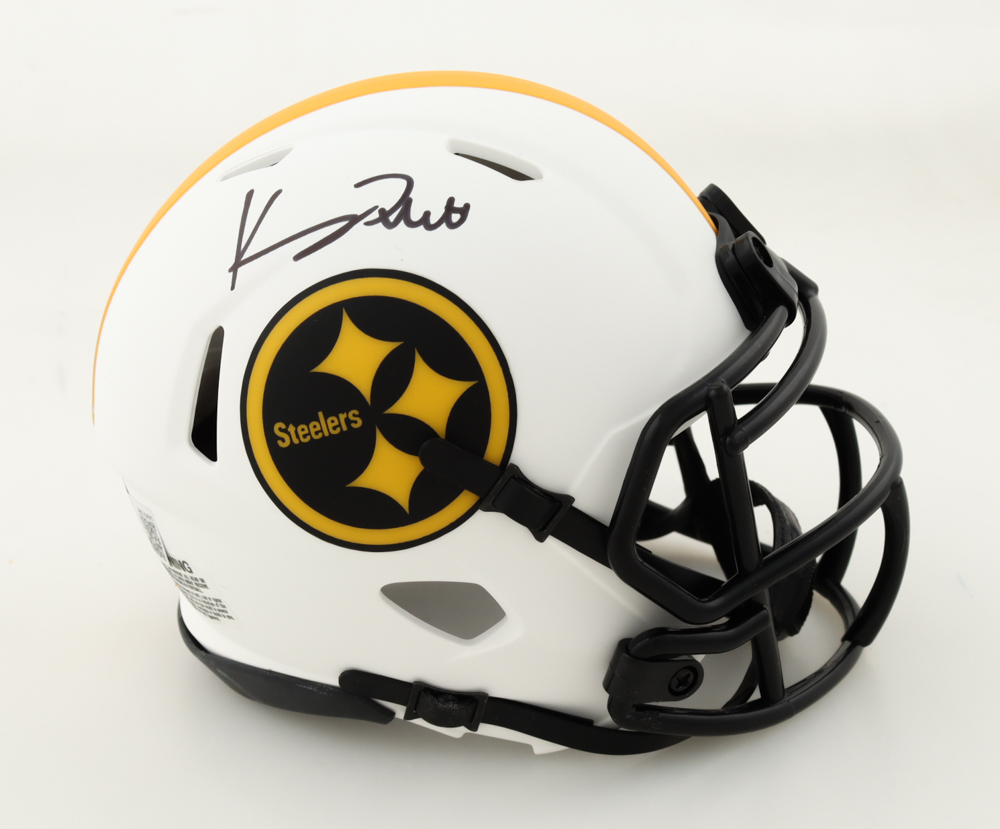 Riddell Pittsburgh Steelers Lunar Eclipse Alternate Speed Mini Helmet has been hand-signed by Kenny Pickett.