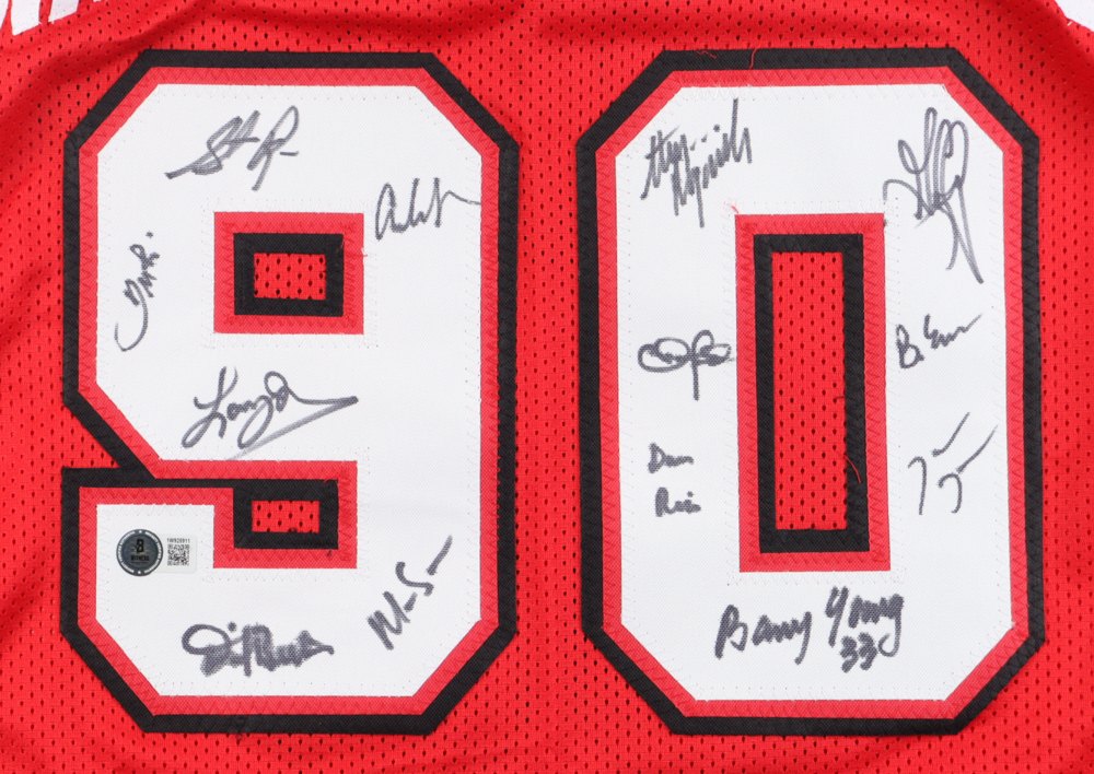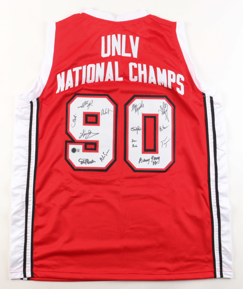 1990 UNLV Runnin' Rebels National Champs Jersey Signed by (13) with Larry Johnson, Stacey Augmon, Greg Anthony, Stacey Cvijanovich (Beckett)