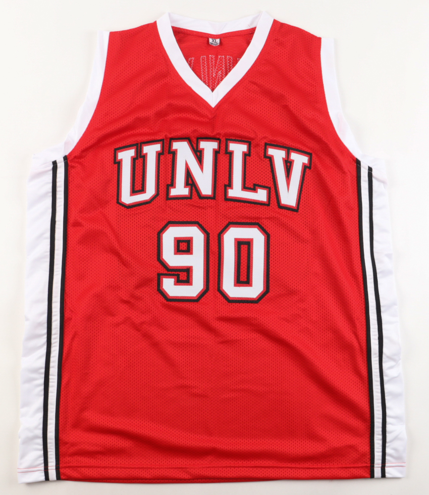 Custom jersey with everything sewn on, size XL. Hand-signed by Larry Johnson, Stacey Augmon, Greg Anthony, Stacey Cvijanovich, David Rice, Barry Young, Moses Scurry, James Jones, Anderson Hunt, David Butler, Bryan Emerzian, Travis Bice, and Chris Jeter.