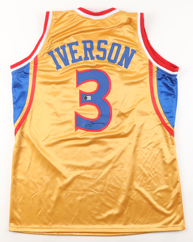 Custom jersey with everything sewn on, size XL. Hand-signed by Allen Iverson (HOF).